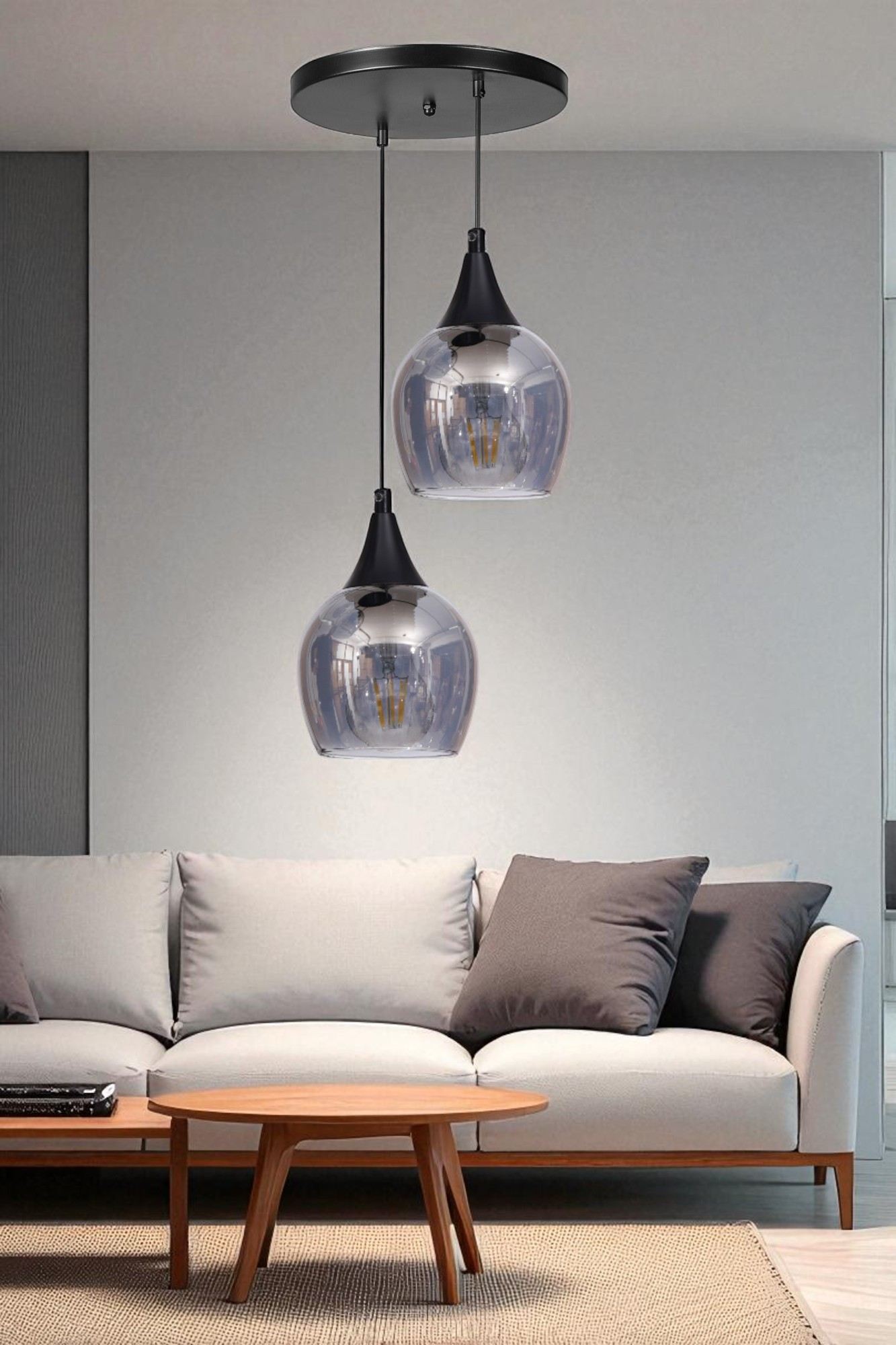 O corpo de metal elegante e a cúpula de vidro deste lustre exalam elegância moderna, enquanto a combinação de cores cinza e preto adiciona um toque de drama e estilo ao seu espaço. O recurso de altura ajustável permite que você personalize a aparência de acordo com suas necessidades, seja para criar uma atmosfera aconchegante ou fazer uma declaração ousada.
