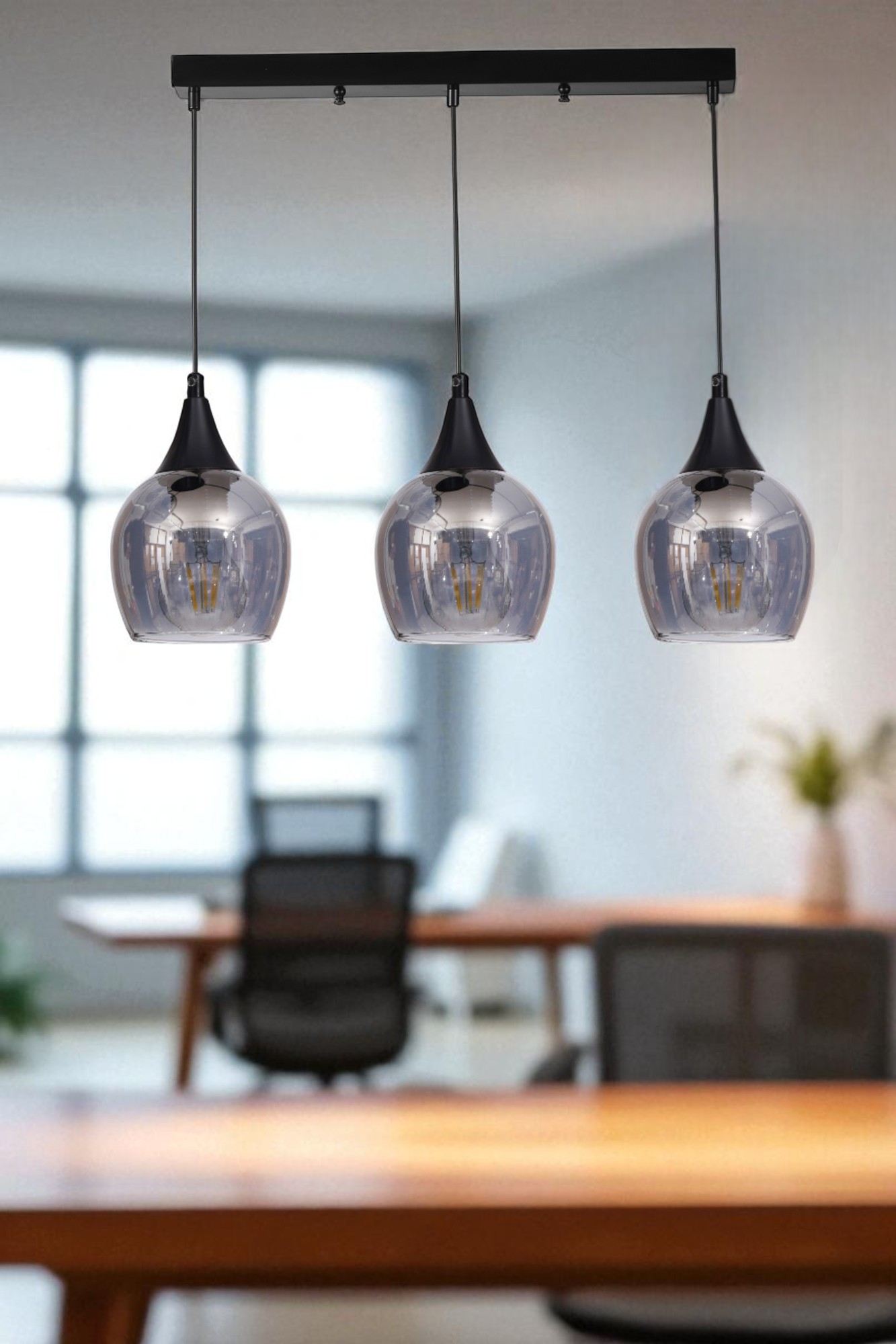 Os três soquetes E27 permitem que você escolha as lâmpadas perfeitas para criar a atmosfera que deseja. Adicione uma luz suave e quente para uma sensação acolhedora ou uma luz branca e brilhante para um visual mais moderno. As possibilidades são infinitas com este lustre versátil.