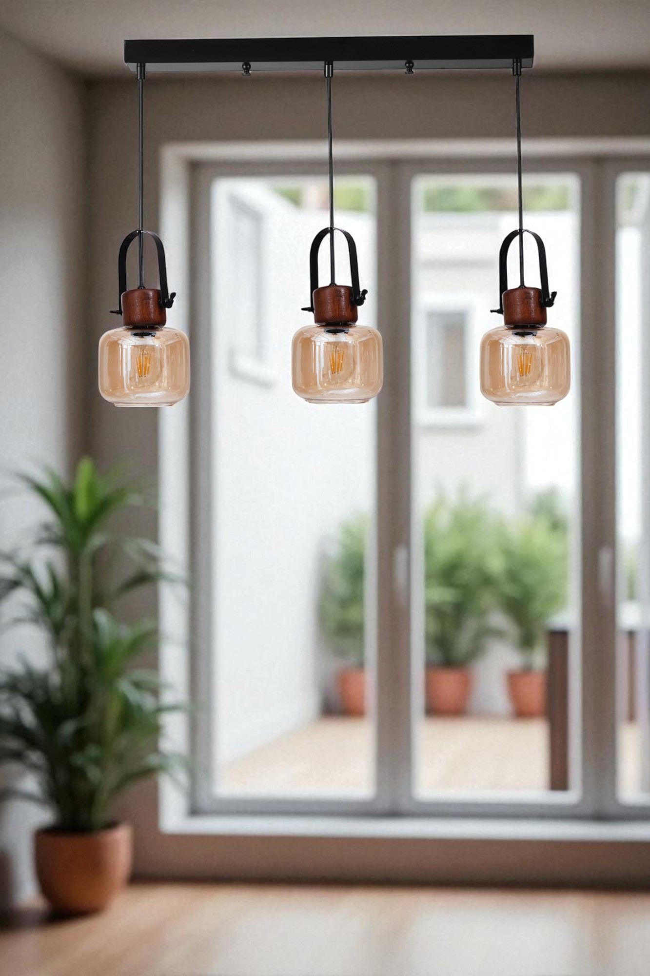Os tons quentes de mel e noz, combinados com os ousados detalhes em preto, criam um impacto visual marcante, tornando este lustre um ponto focal em qualquer ambiente. Se você está procurando adicionar um toque de sofisticação à sua sala de jantar ou criar uma atmosfera aconchegante em seu quarto, este lustre é a escolha perfeita.