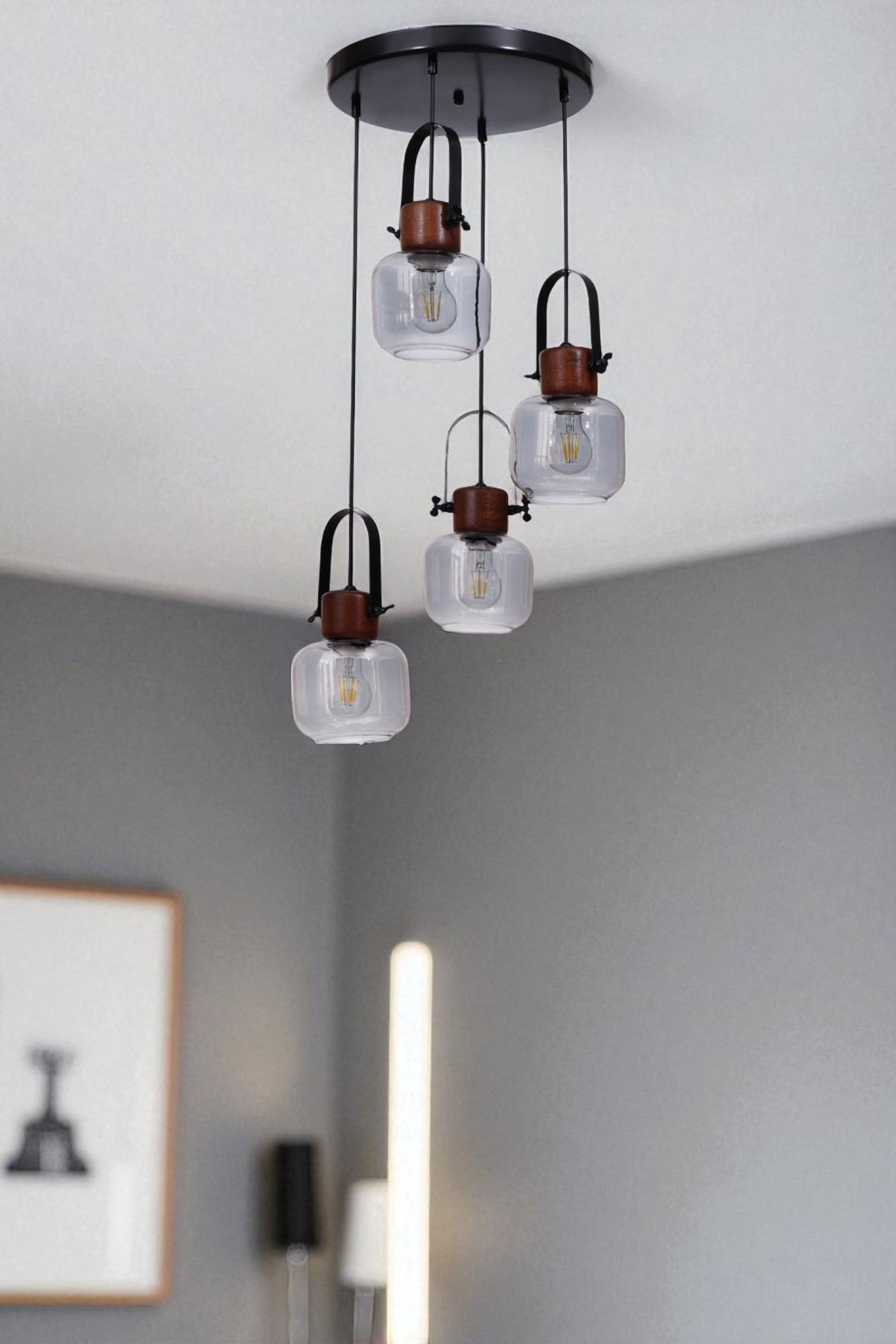 Candeeiro de Teto de Metal e Vidro – Altura Ajustável 80 cm – Cinza/Noz/Preto