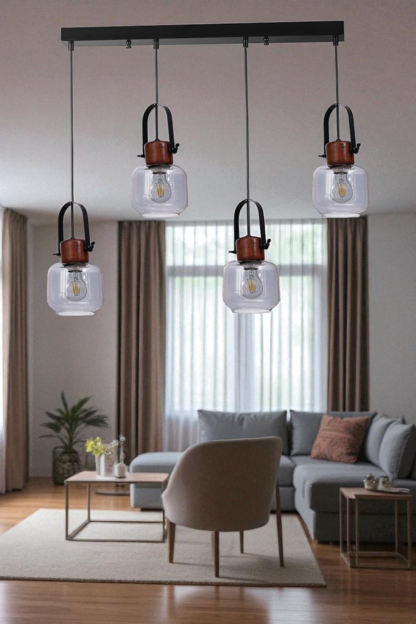 O lustre apresenta um corpo de metal elegante com uma tampa de vidro, conferindo-lhe um visual moderno e estiloso que complementará qualquer decoração. As cores cinza, nogueira e preto adicionam um toque de sofisticação ao design, tornando-o uma peça de destaque em qualquer ambiente.