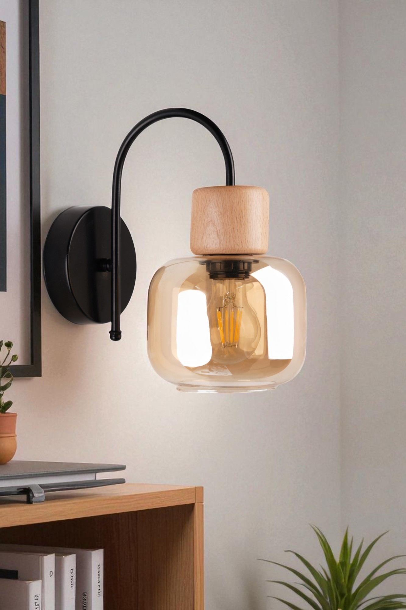 Candeeiro de Parede – Ø15 cm – Mel, Carvalho e Preto – Metal e Vidro