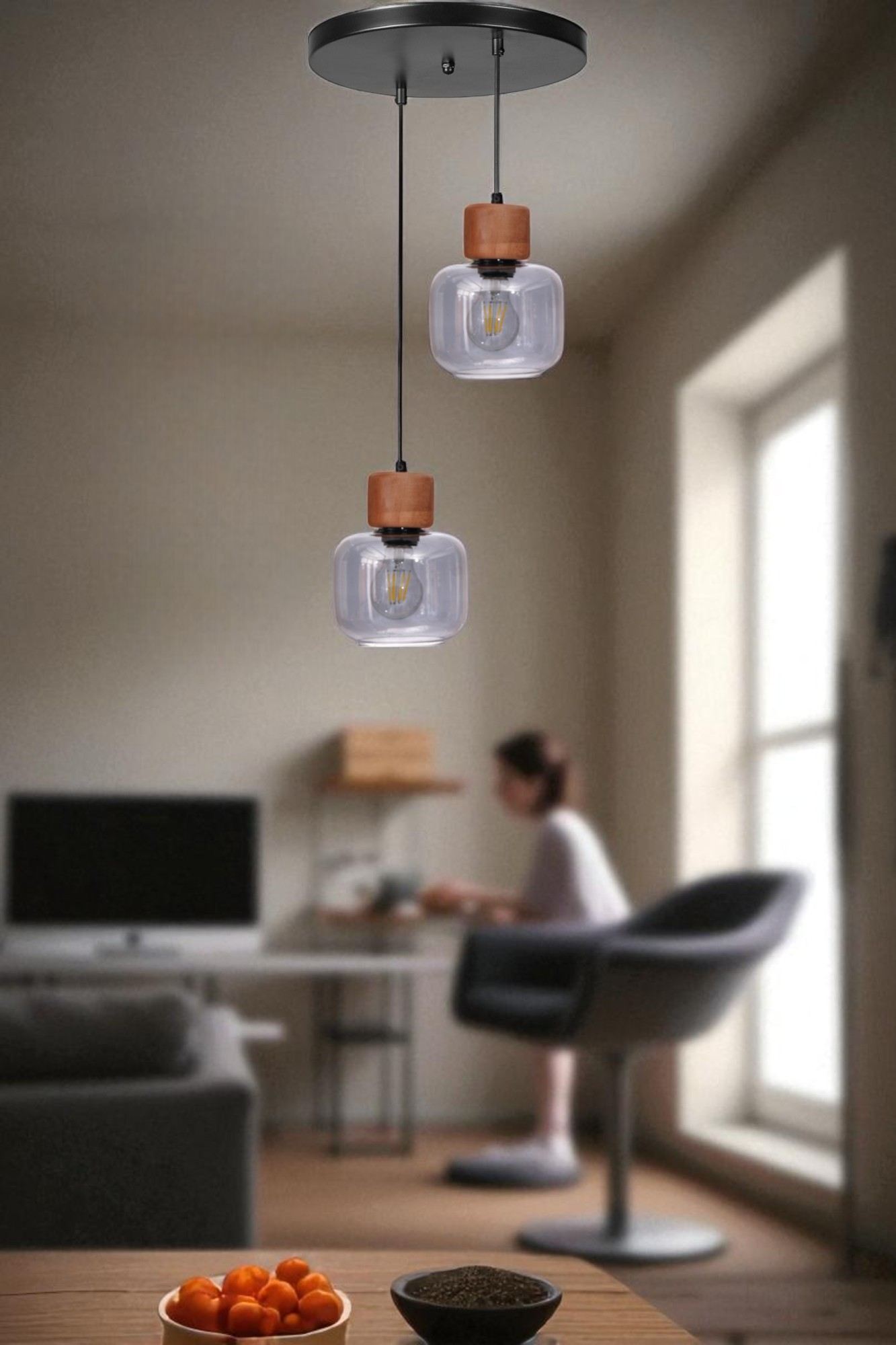 Elaborado com precisão e atenção aos detalhes, este lustre é feito para durar e será uma adição atemporal à sua decoração. A combinação das cores Cinza, Carvalho e Preto adiciona um toque de versatilidade, facilitando a combinação com qualquer móvel ou esquema de cores existente.
