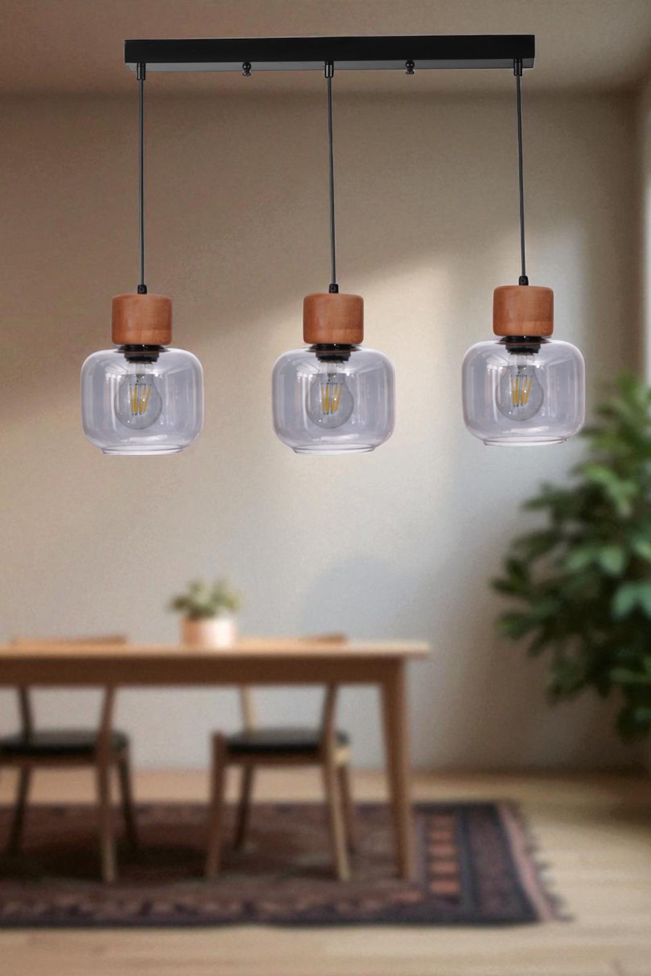 Candeeiro de Teto – 80 cm – Cinza, Carvalho e Preto – Metal e Vidro