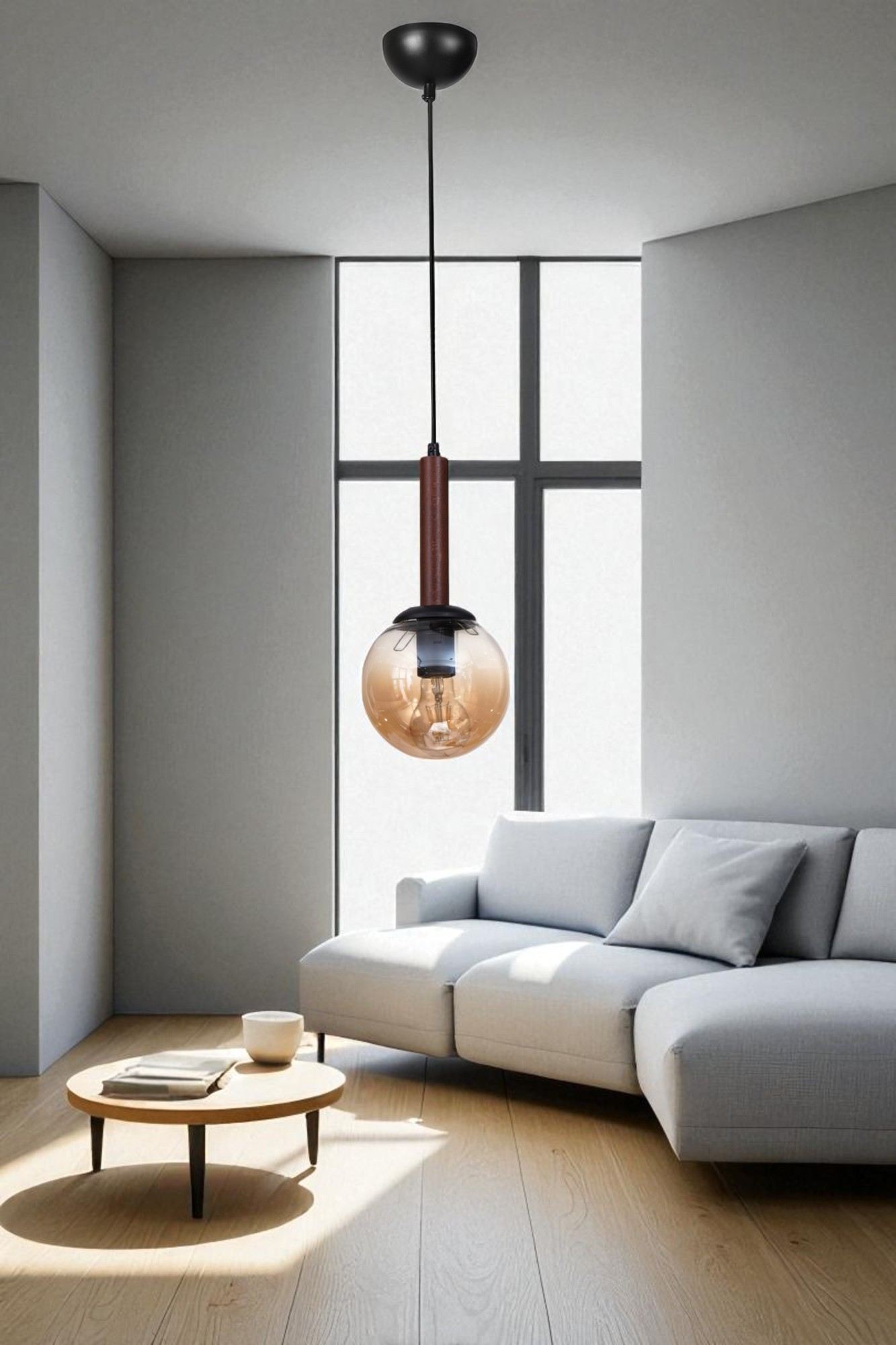 Candeeiro de Teto de metal com tampa de vidro – altura ajustável 80 cm – Ø15 cm – cor mel, nogueira e preto