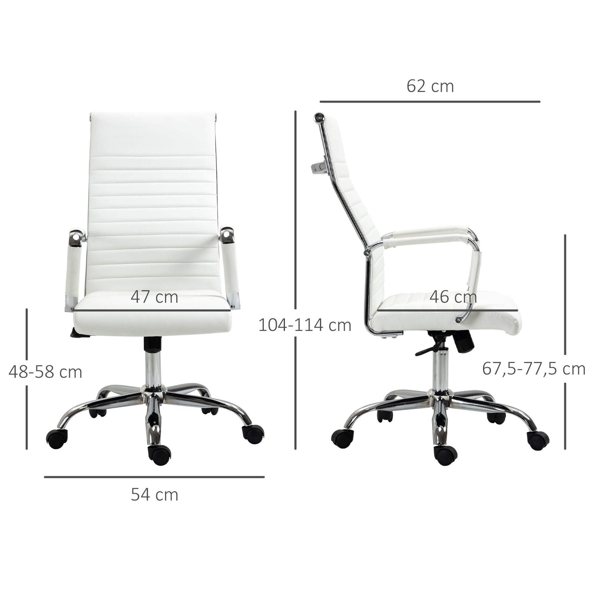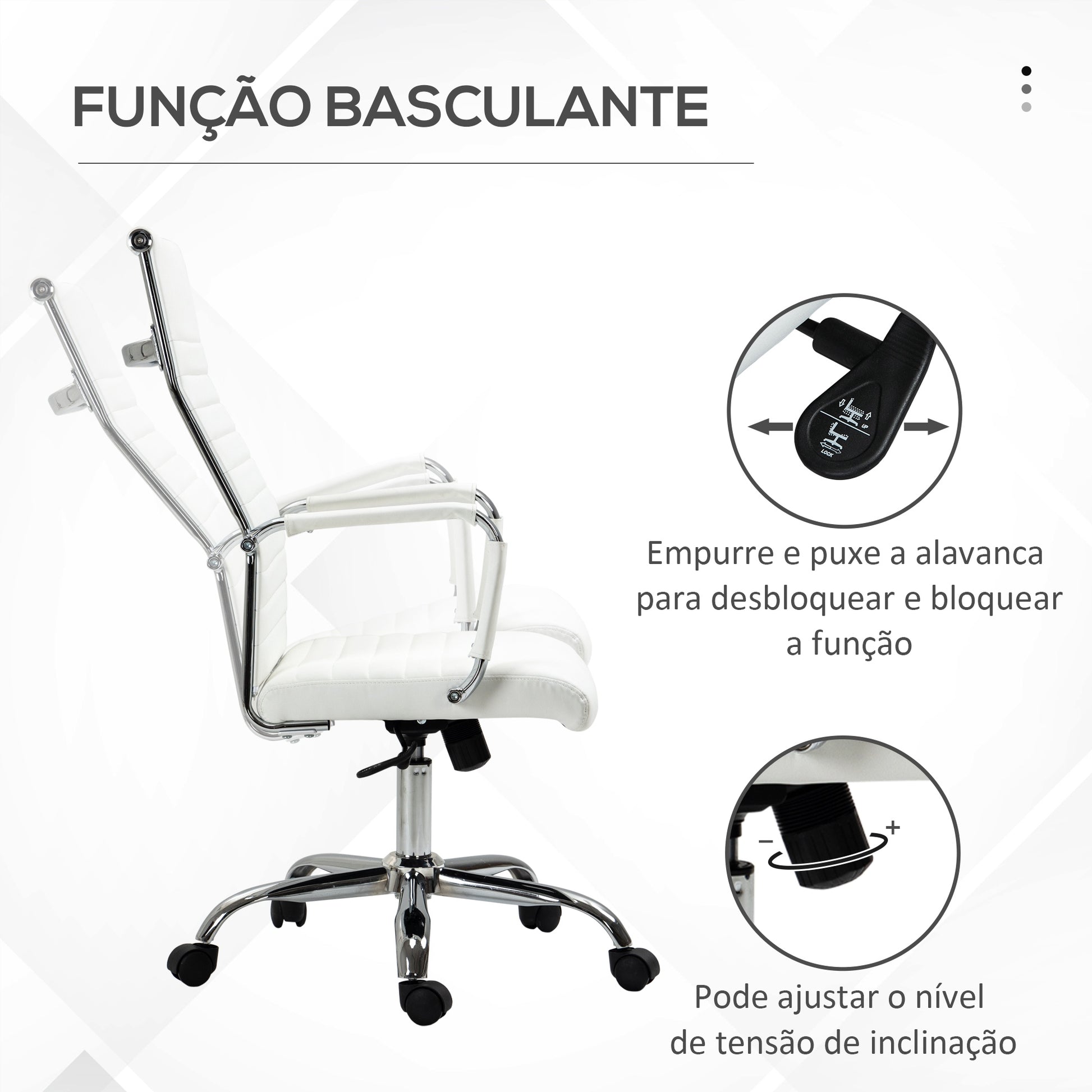 Cadeira de Escritório Ergonómica – 54x62x104-114 cm – Branca – Couro Sintético