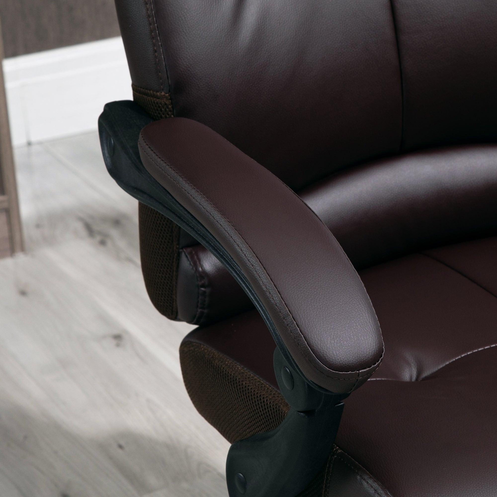A cadeira de escritório ergonómica marrom combina design ergonómico, materiais de qualidade e funcionalidades úteis para garantir o seu conforto durante longas horas de trabalho. Ajuste a altura, recline o encosto e relaxe com o apoio para os pés retrátil. Não comprometa a sua postura e produtividade - escolha esta cadeira!