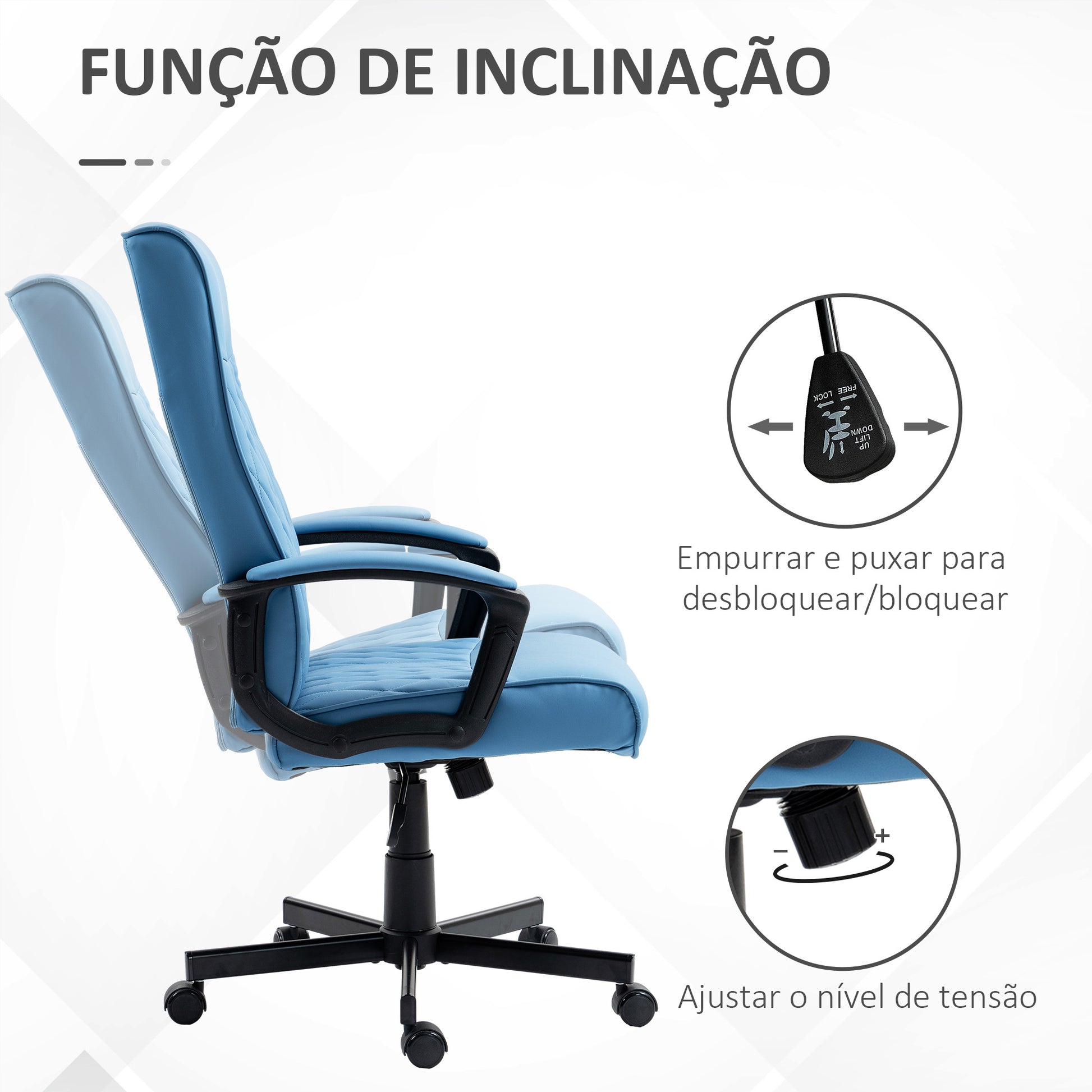 Adicione estilo e conforto ao seu espaço de trabalho com a Cadeira de Escritório Giratória 360° Azul, garantindo um ambiente ergonômico e elegante.