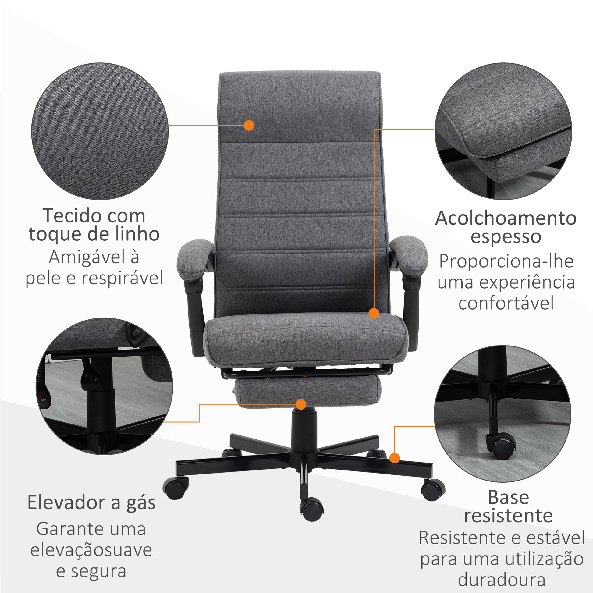 Cadeira de Escritório Reclinável – 68x67x114 cm – Cinza – Poliéster