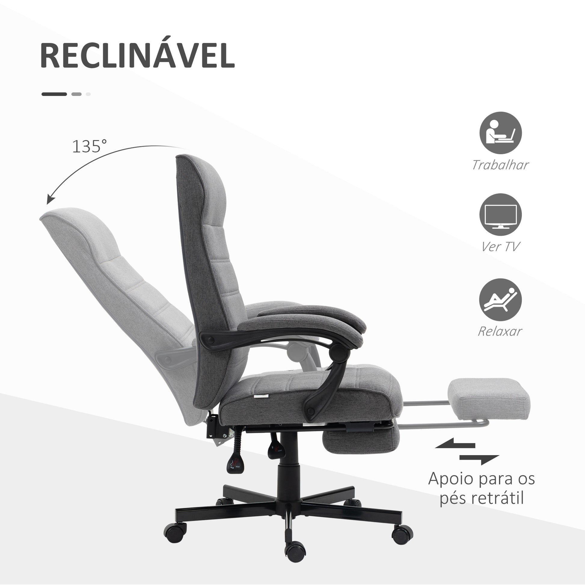 - Benefícios: Encosto alto e curvado para o máximo conforto, função reclinável com ângulo de até 135°, apoio para os pés retrátil, assento acolchoado fácil de limpar