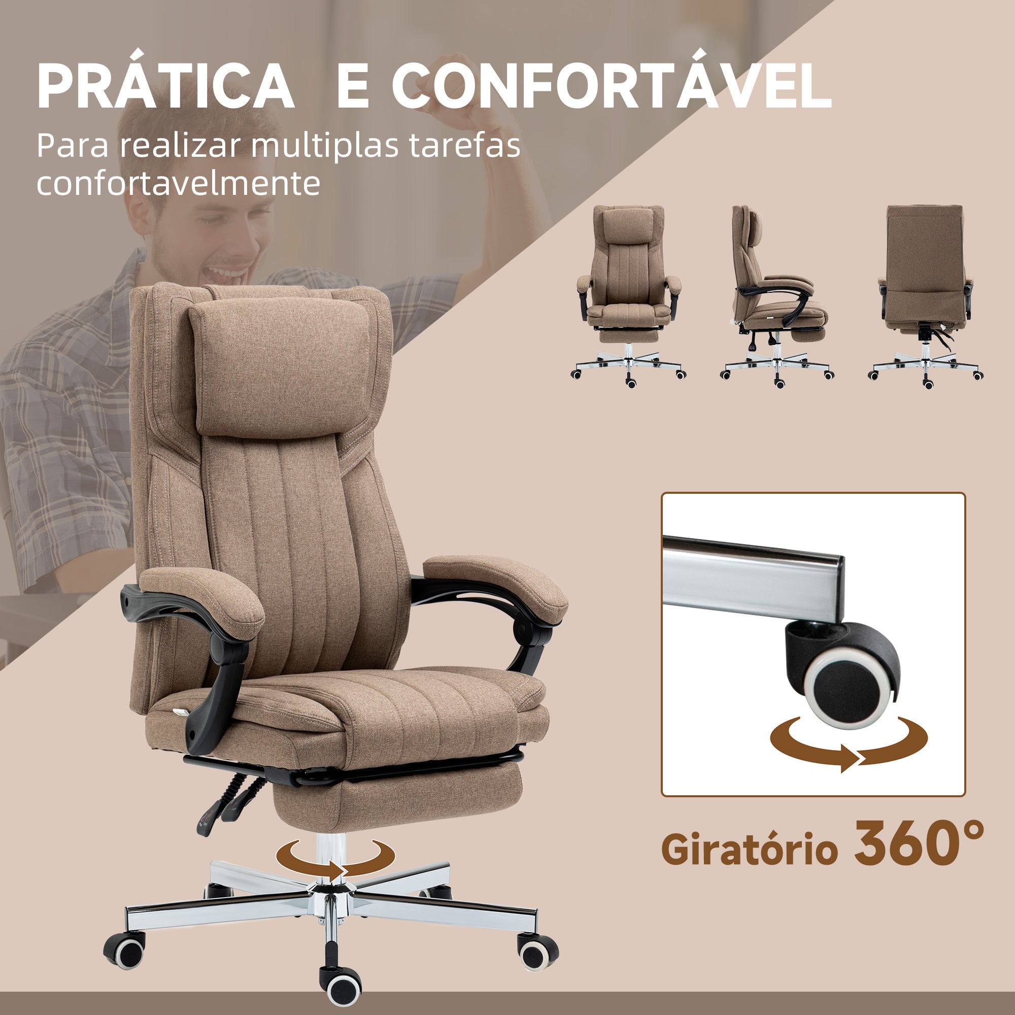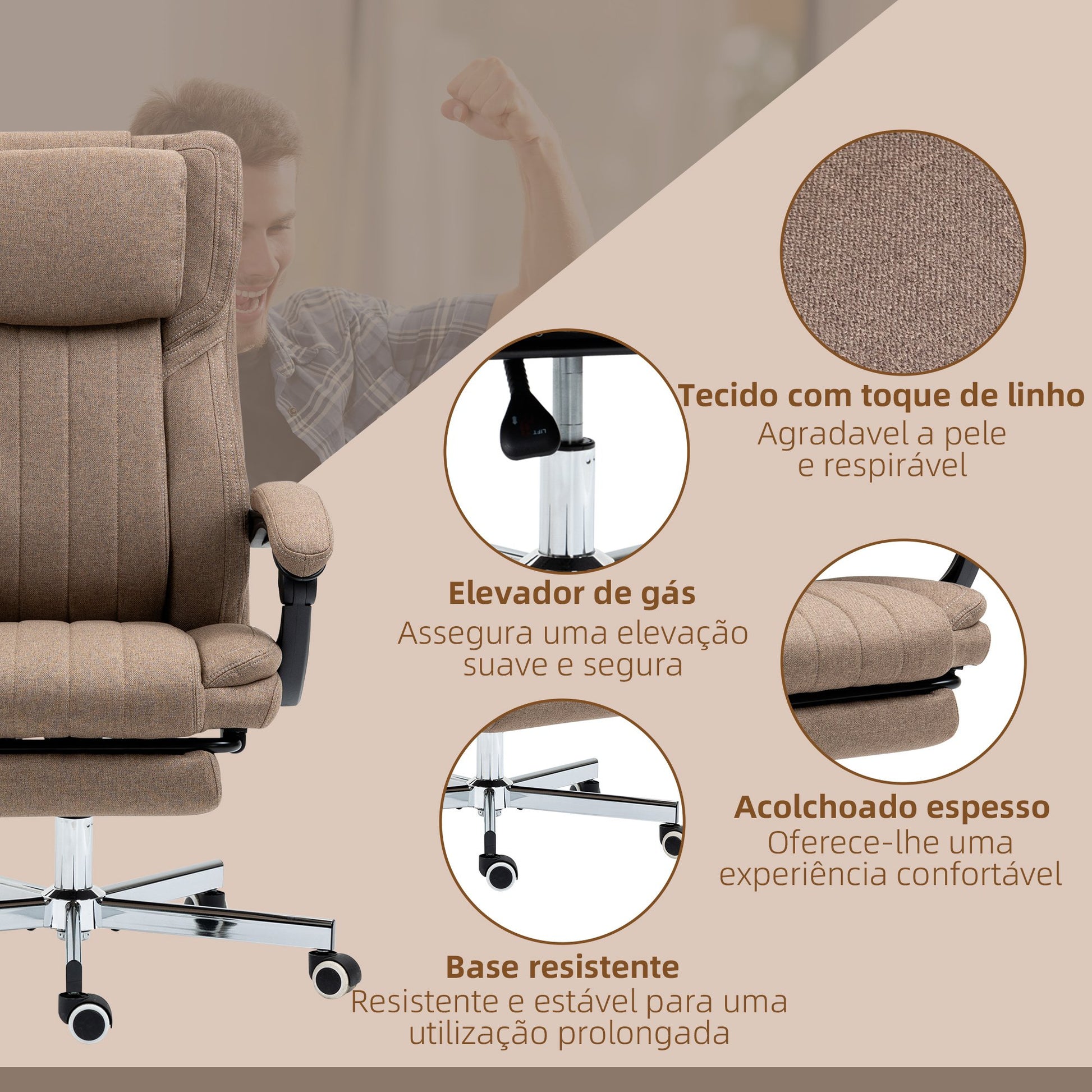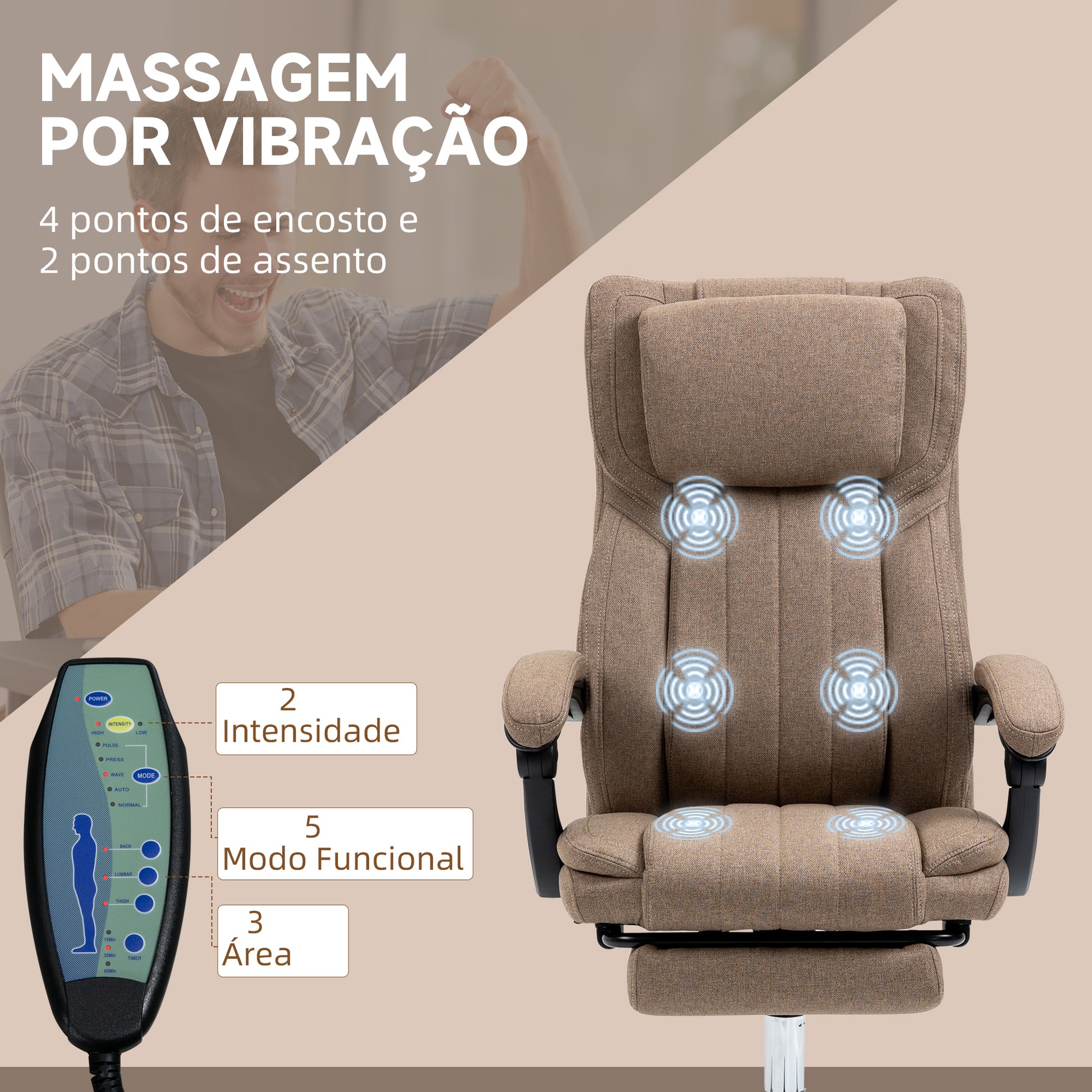 Cadeira de Escritório com Massagem Vibratória – 65x61x113 cm – Marrom – Linho Sintético