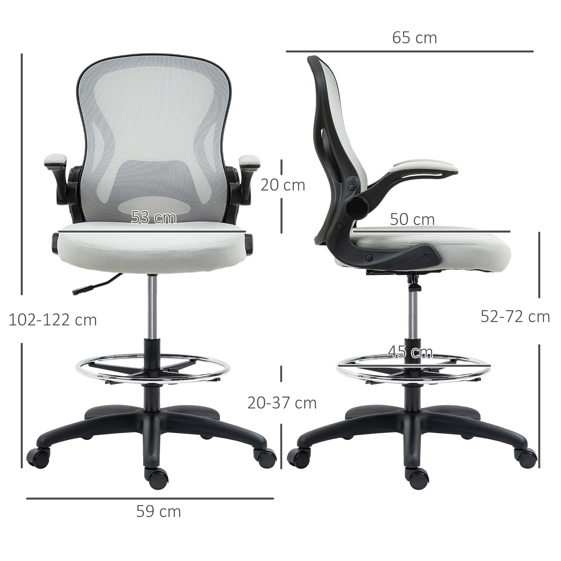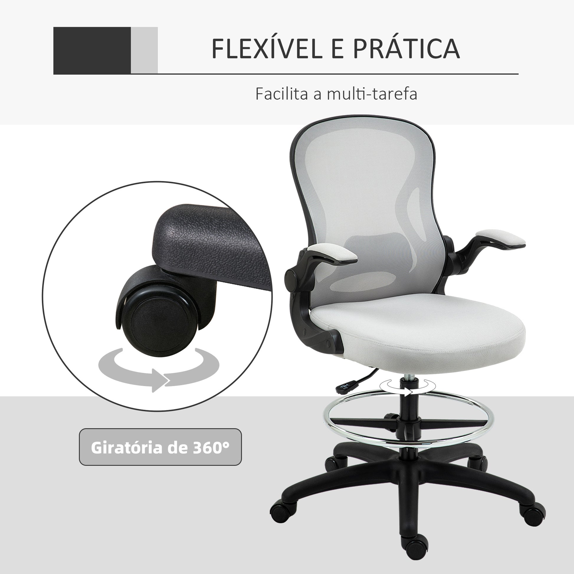 Cadeira de Escritório Ergonómica – 59x65x102-122 cm – Cinza Claro – Tecido de malha, espuma, placa multicamadas e nylon