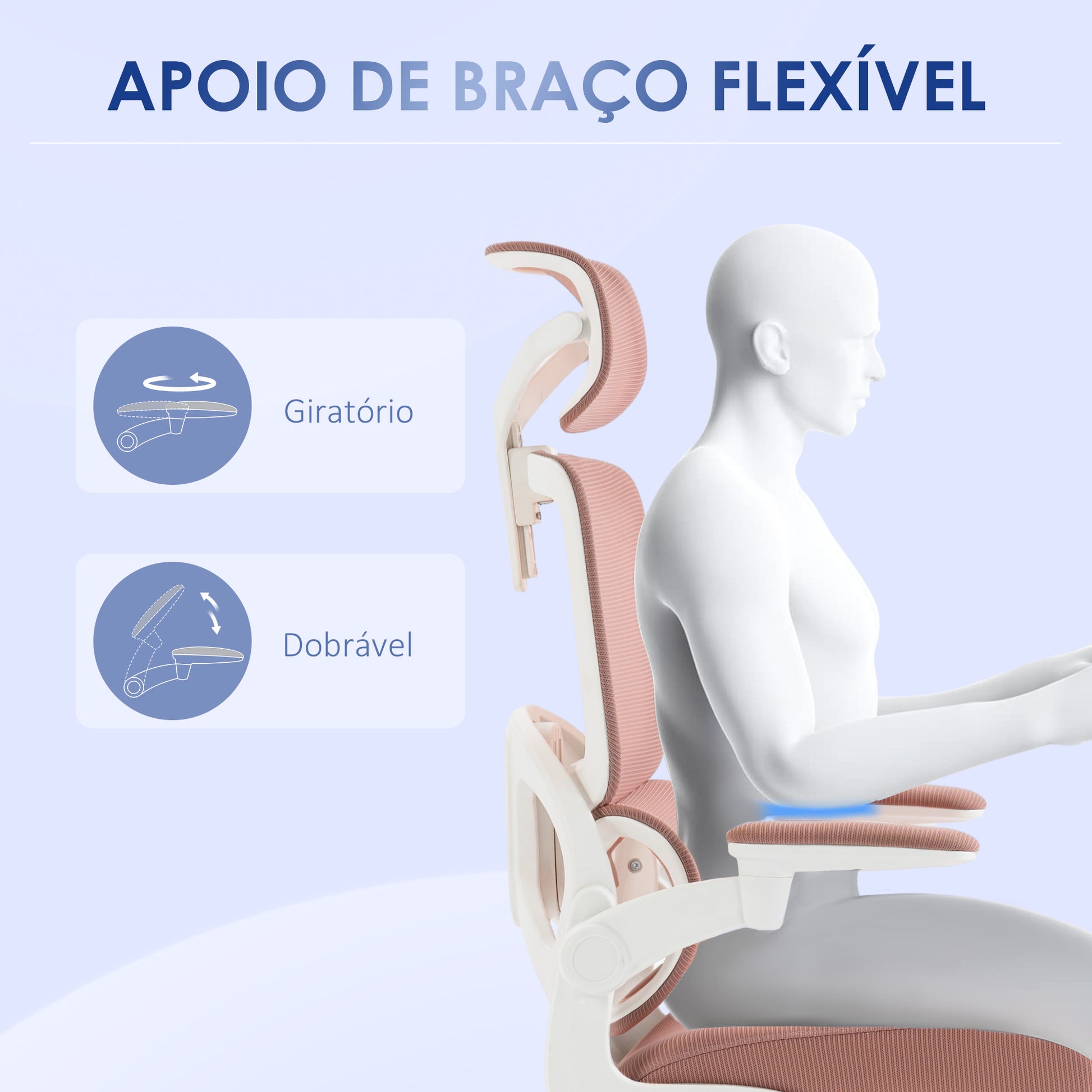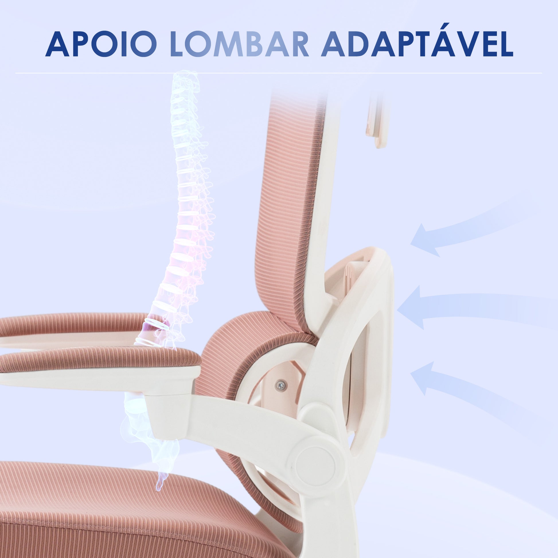 Cadeira de Escritório com Encosto Alto Rosa 62x58x120-133 cm