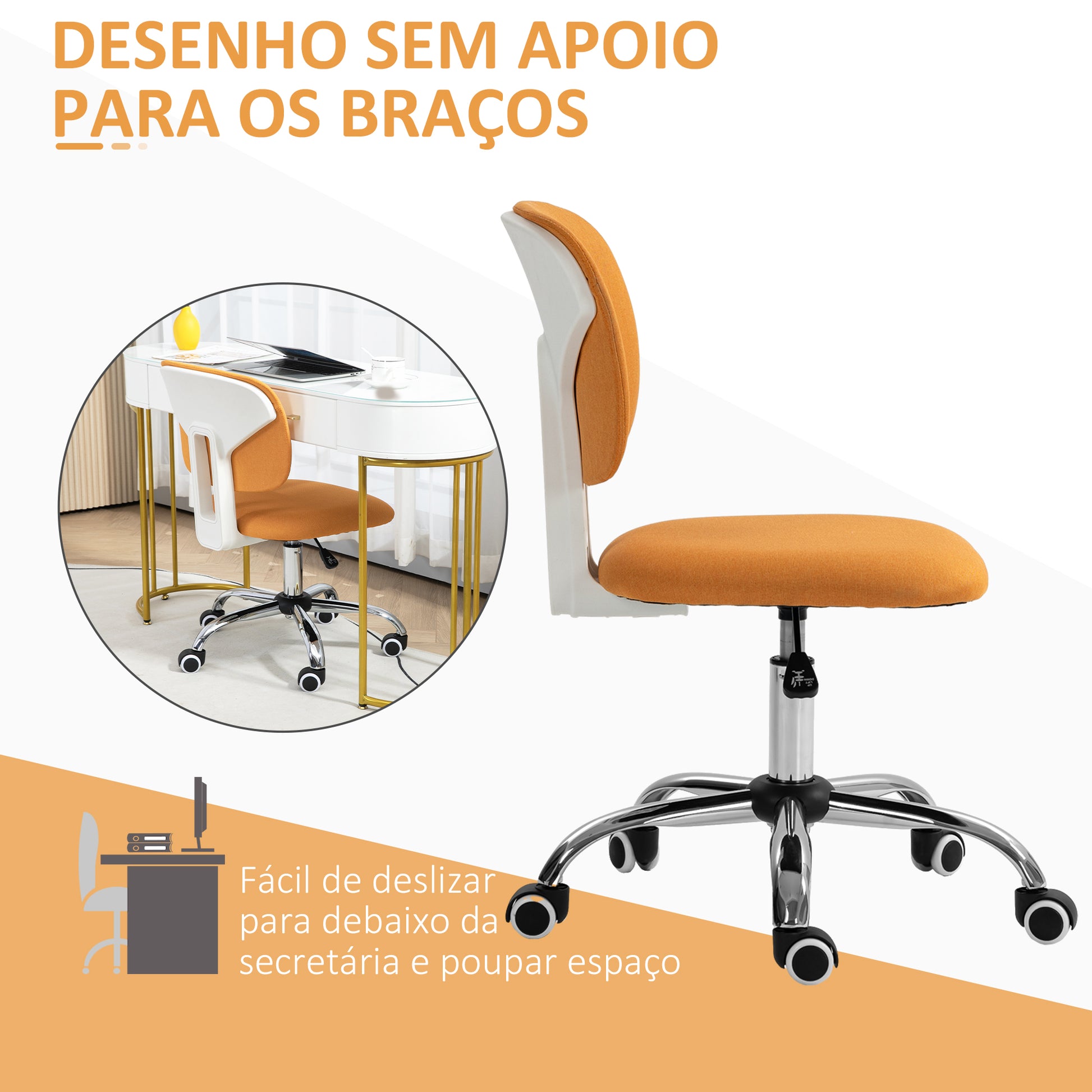Cadeira de Escritório – 48x53x80-90 cm – Laranja – Tecido de linho sintético