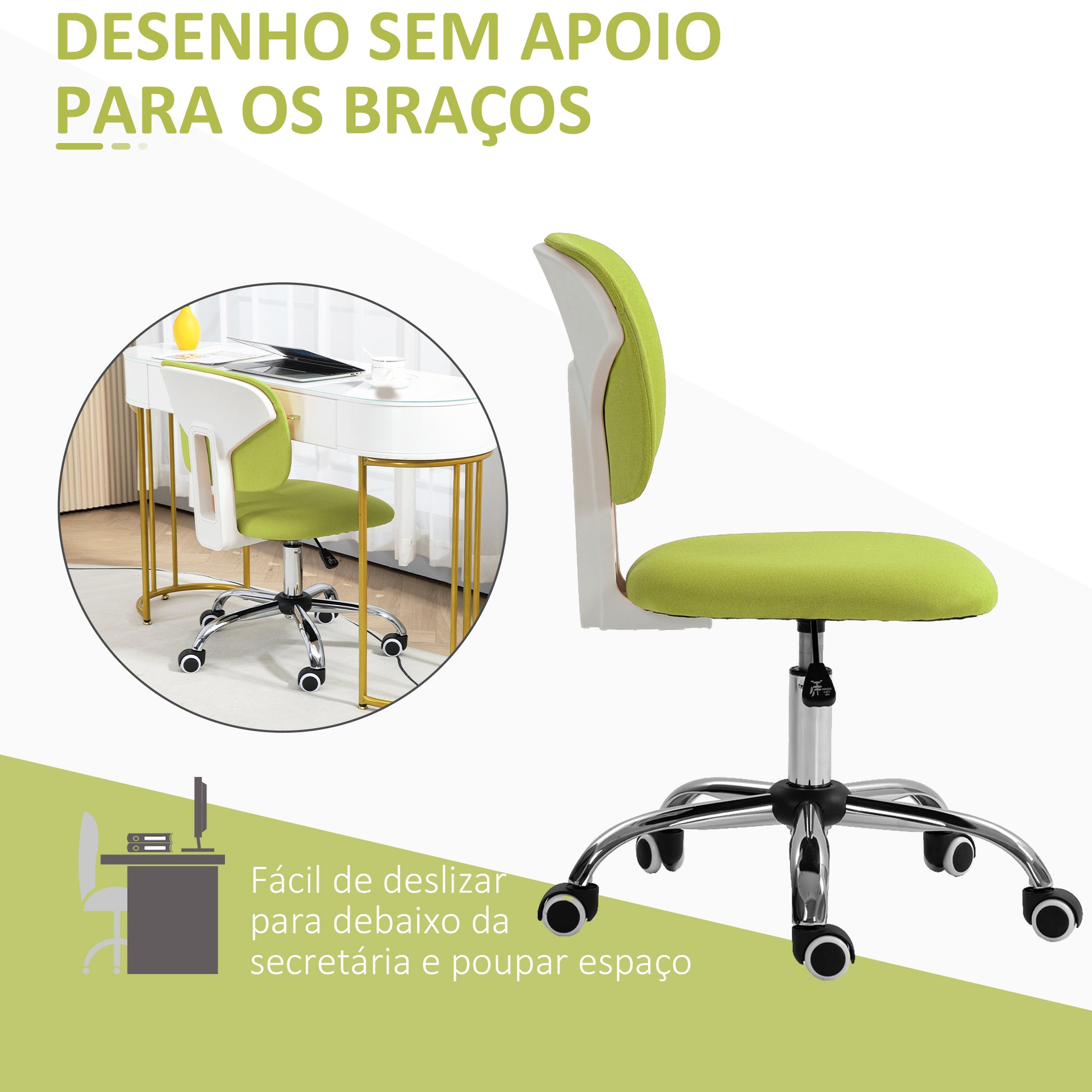 Cadeira de Escritório Estofada – 48x53x80-90 cm – Verde