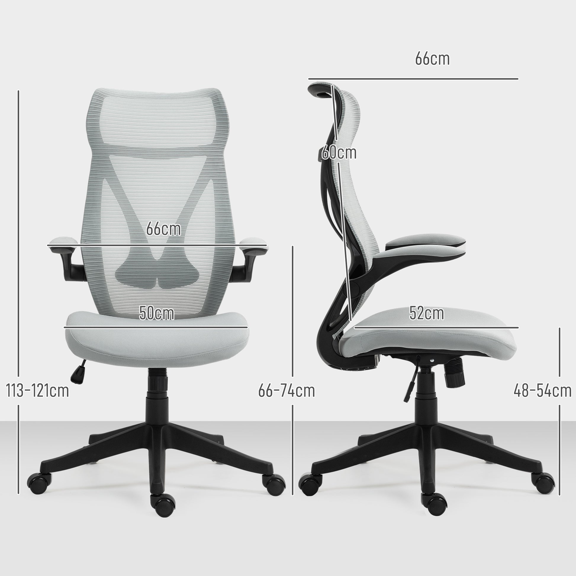 Cadeira de Escritório – 66x66x113-121 cm – Cinza Claro – Malha (100% poliéster)