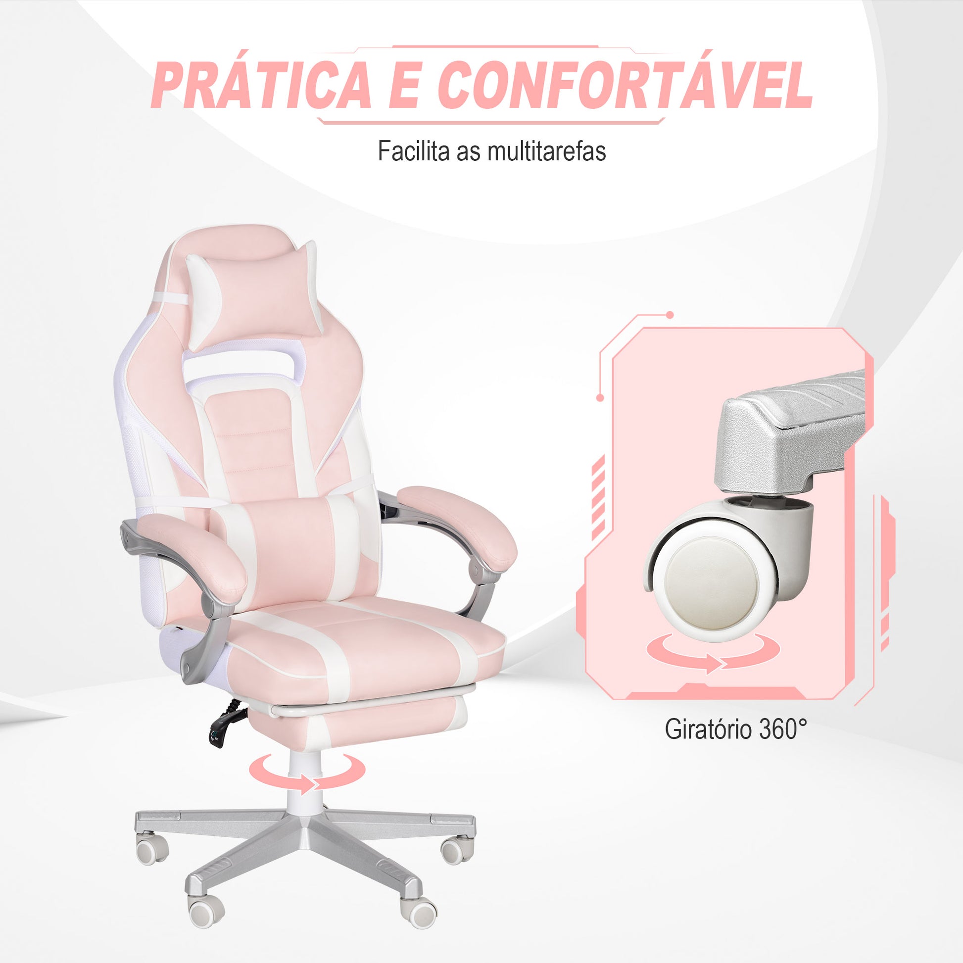 Cadeira de Escritório Reclinável – 63x63x115,5-123 cm – Rosa – Couro sintético