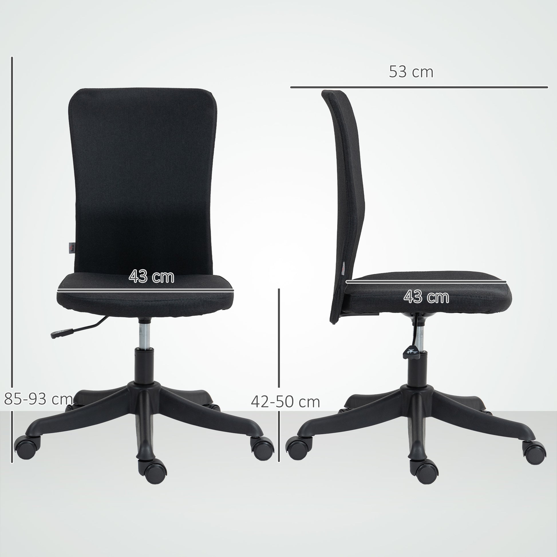 Esta cadeira de escritório estofada em linho sintético preto é perfeita para qualquer espaço, seja em escritórios ou áreas de estudo. Com medidas totais de 53x43x85-93 cm, oferece conforto e estilo ao seu ambiente de trabalho.