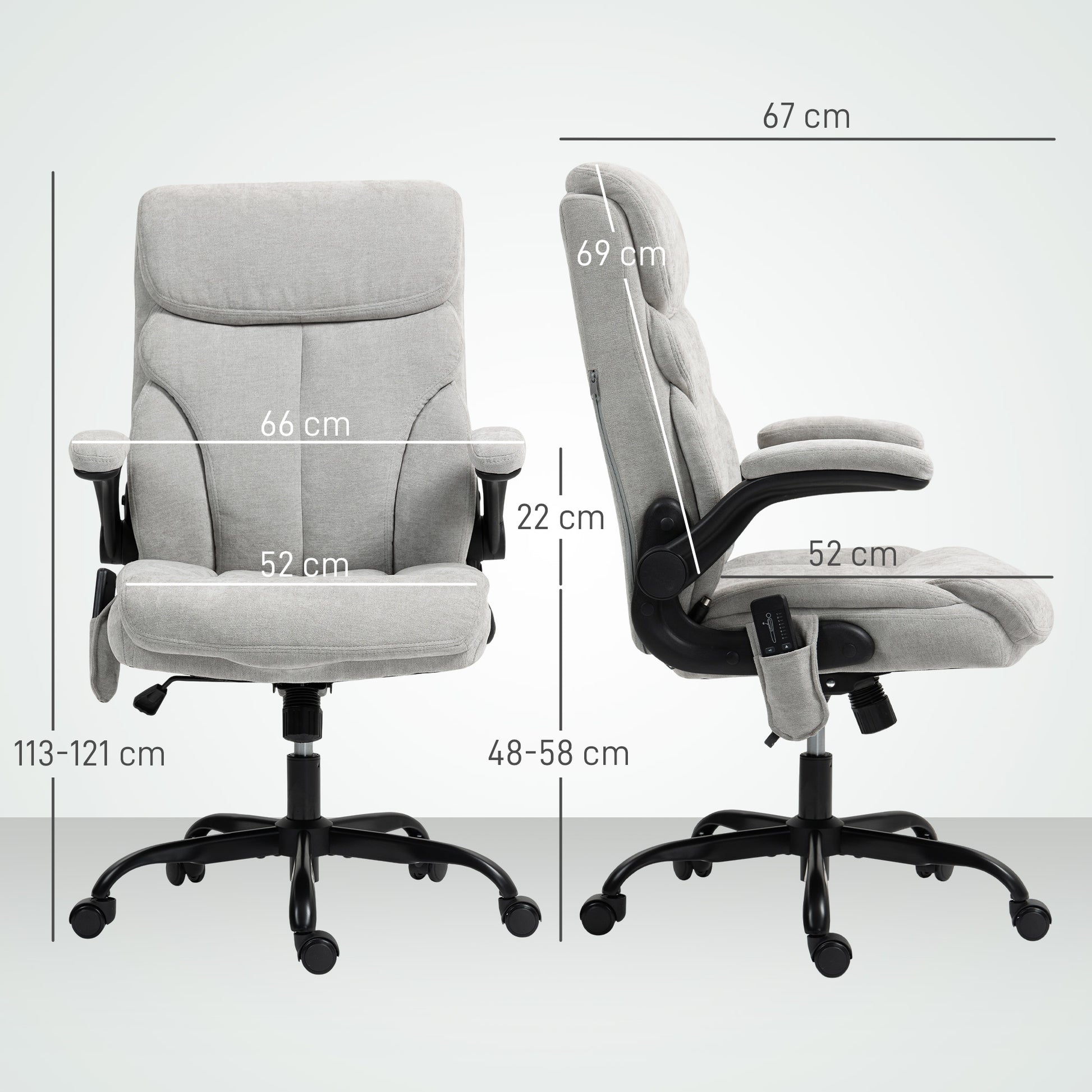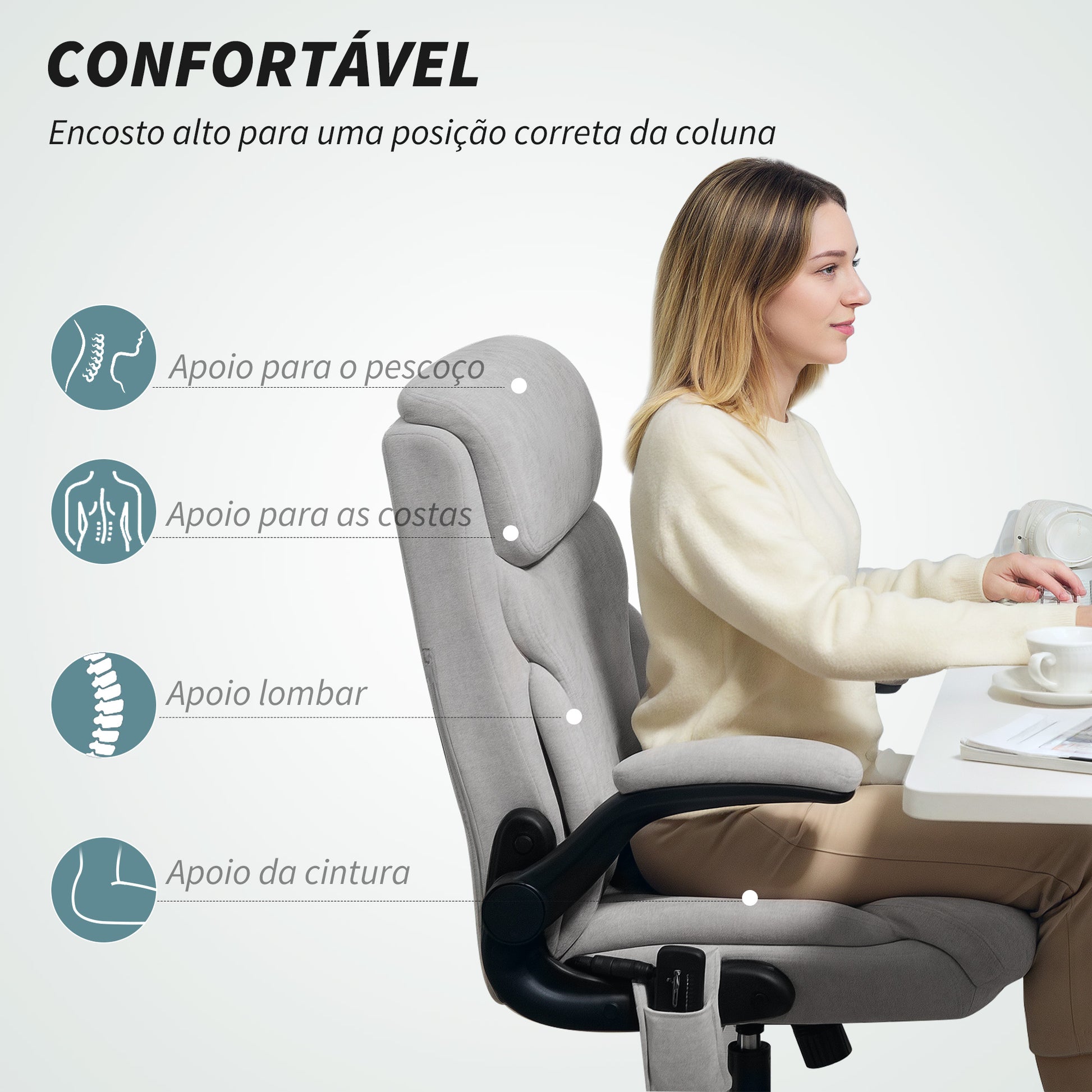 Procura conforto enquanto trabalha? Esta cadeira de escritório com massagem é ideal para si. Desfrute de uma massagem vibratória na zona lombar com oito modos e três níveis de intensidade, acompanhada de uma função de calor para maior conforto. O acolchoamento espesso em espuma de alta densidade no assento e no encosto, combinado com o tecido respirável tipo linho, proporciona conforto durante horas de uso.