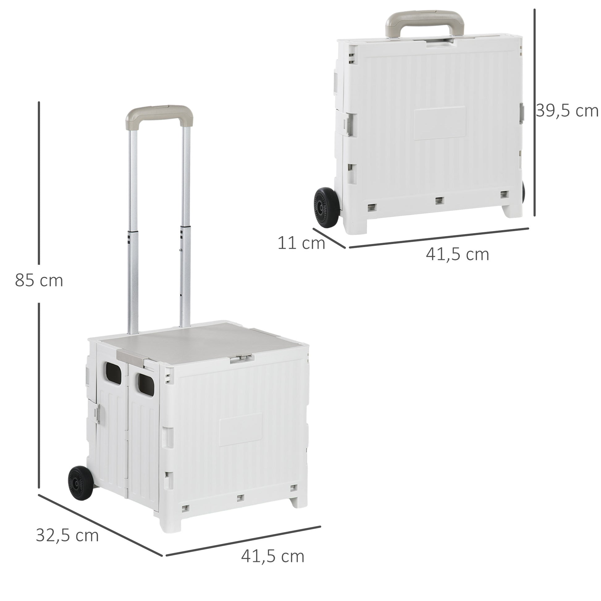 Carrinho de Armazenamento Dobrável com 2 Rodas 32L Branco 41,5x32,5x85 cm