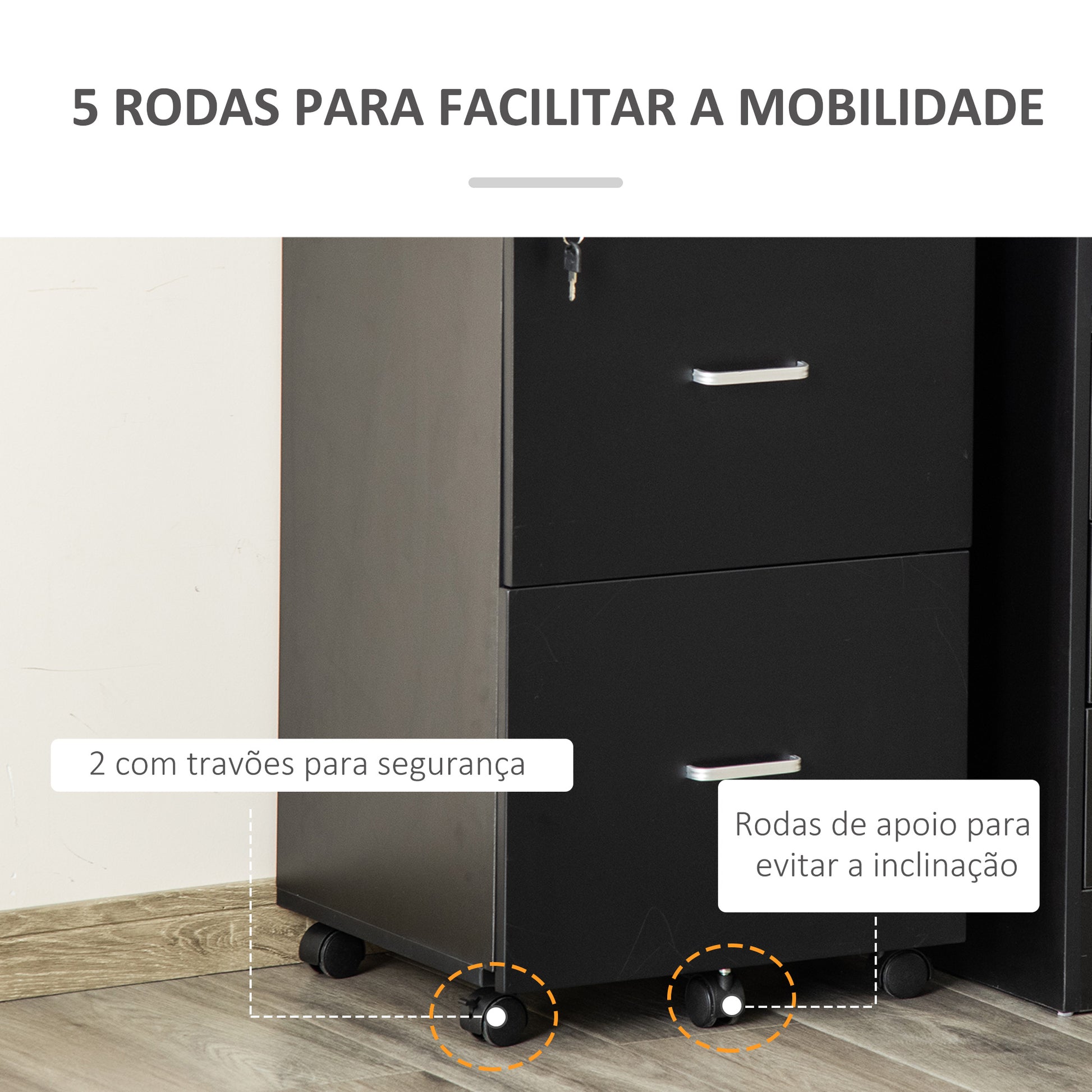 Bloco de Gavetas de Escritório Móvel – 43x45x72cm – Preto – MDF e melamina