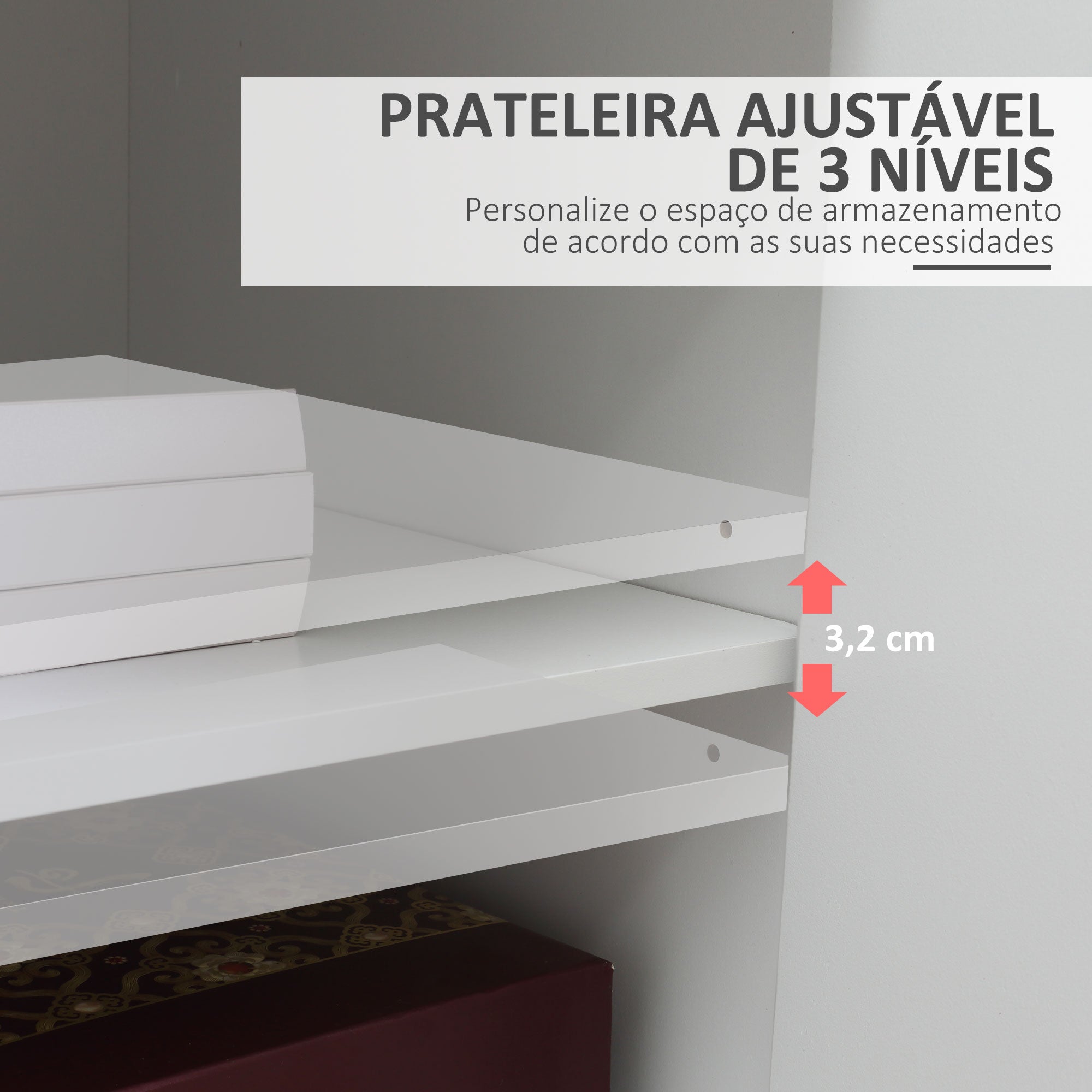 - Outras especificações: Capacidade máxima de peso: 3 kg (gaveta), 5 kg (prateleira), 40 kg (total). Requer montagem