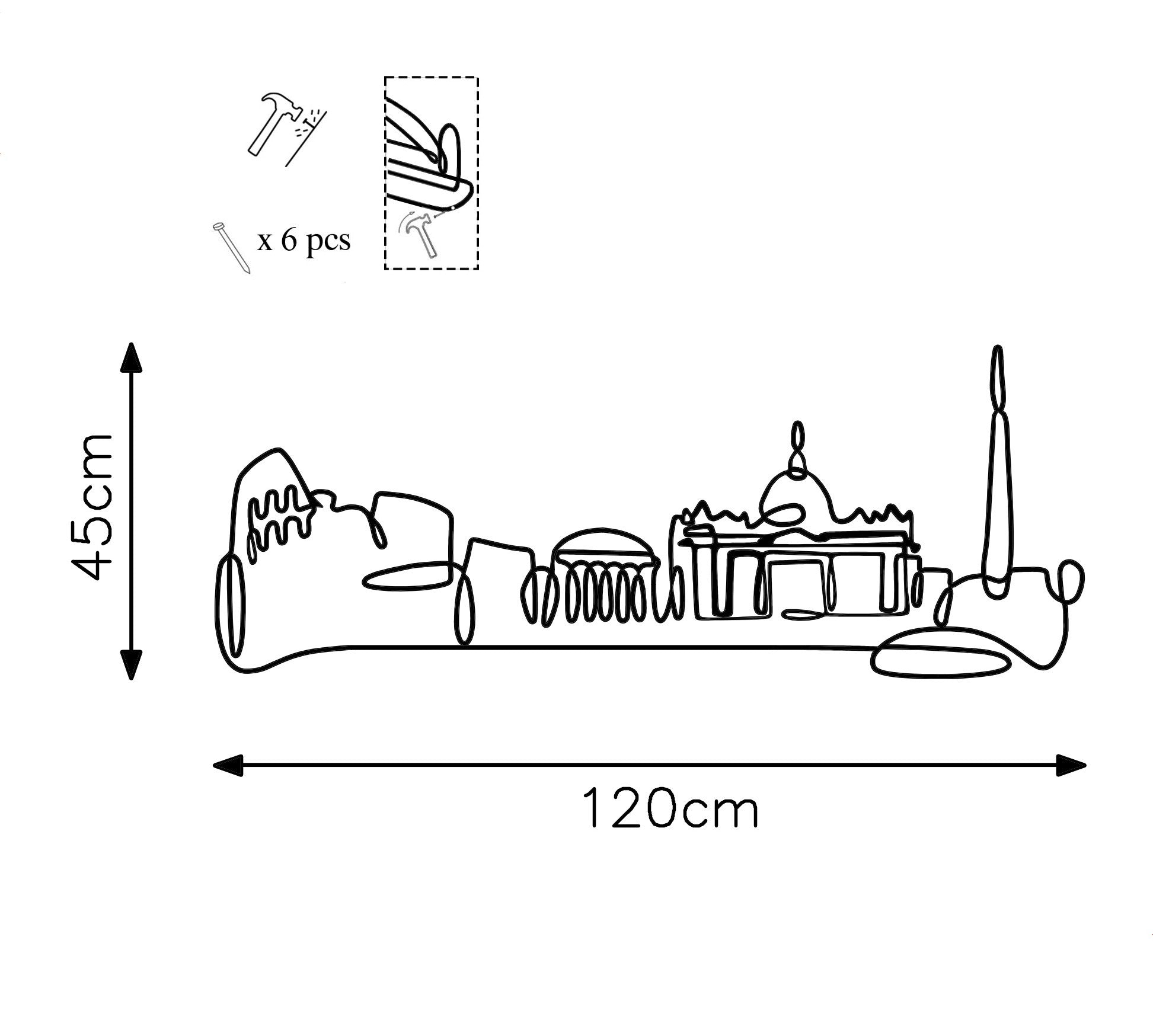 Acessório Decorativo de Parede City - Metal Preto 120x45cm para Decoração Moderna