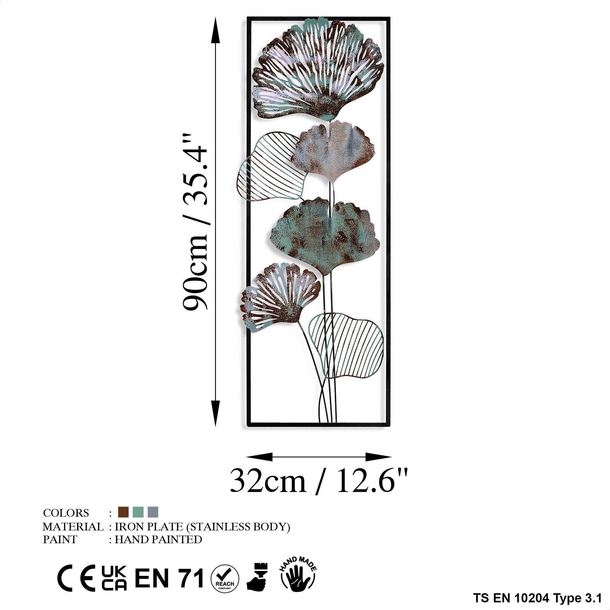 Arte de Parede Metálica Multicolor Artesanal - Acessório Decorativo 32x90cm para Pendurar