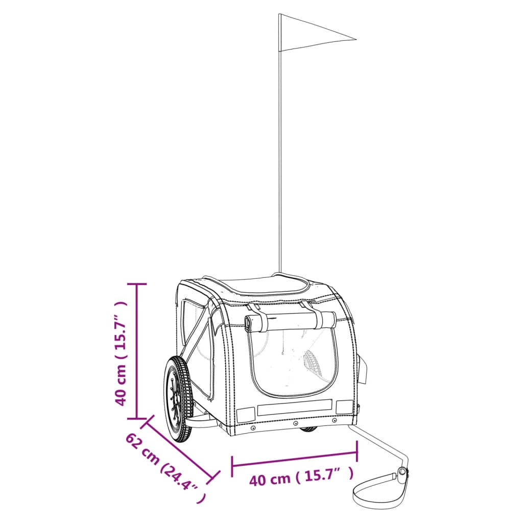 Reboque bicicleta p/ animais tecido oxford/ferro laranja/cinza
