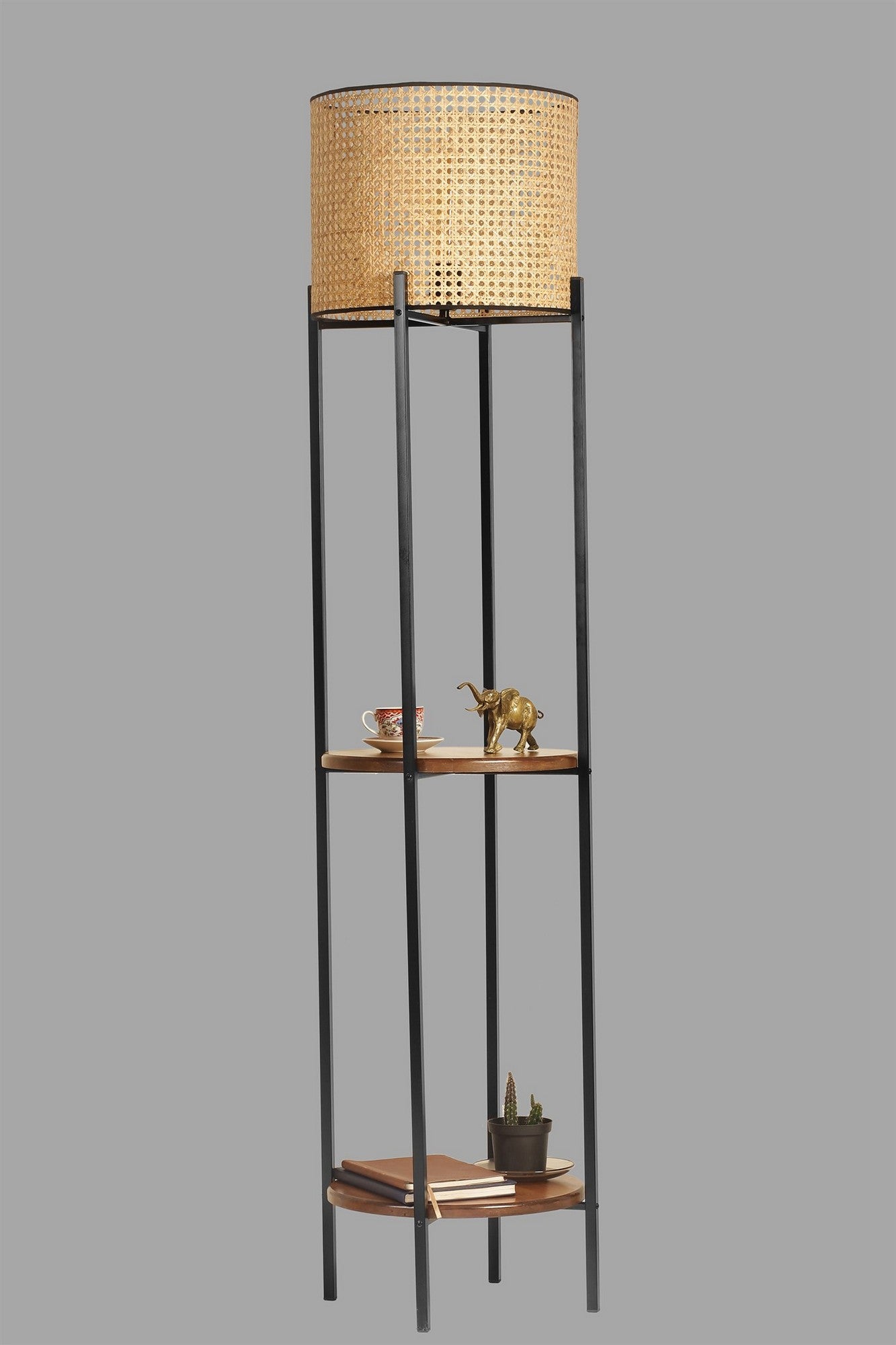 Candeeiro de Pé – 162 cm – Preto e Rattan
