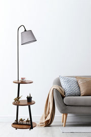 Esta lâmpada de piso possui três prateleiras de tamanhos diferentes, proporcionando amplo espaço para exibir seus livros, plantas ou itens decorativos favoritos. A combinação única das cores nogueira, preta e cinza adiciona um toque de sofisticação a qualquer ambiente, enquanto o botão de ligar/desligar no cabo permite uma operação fácil.