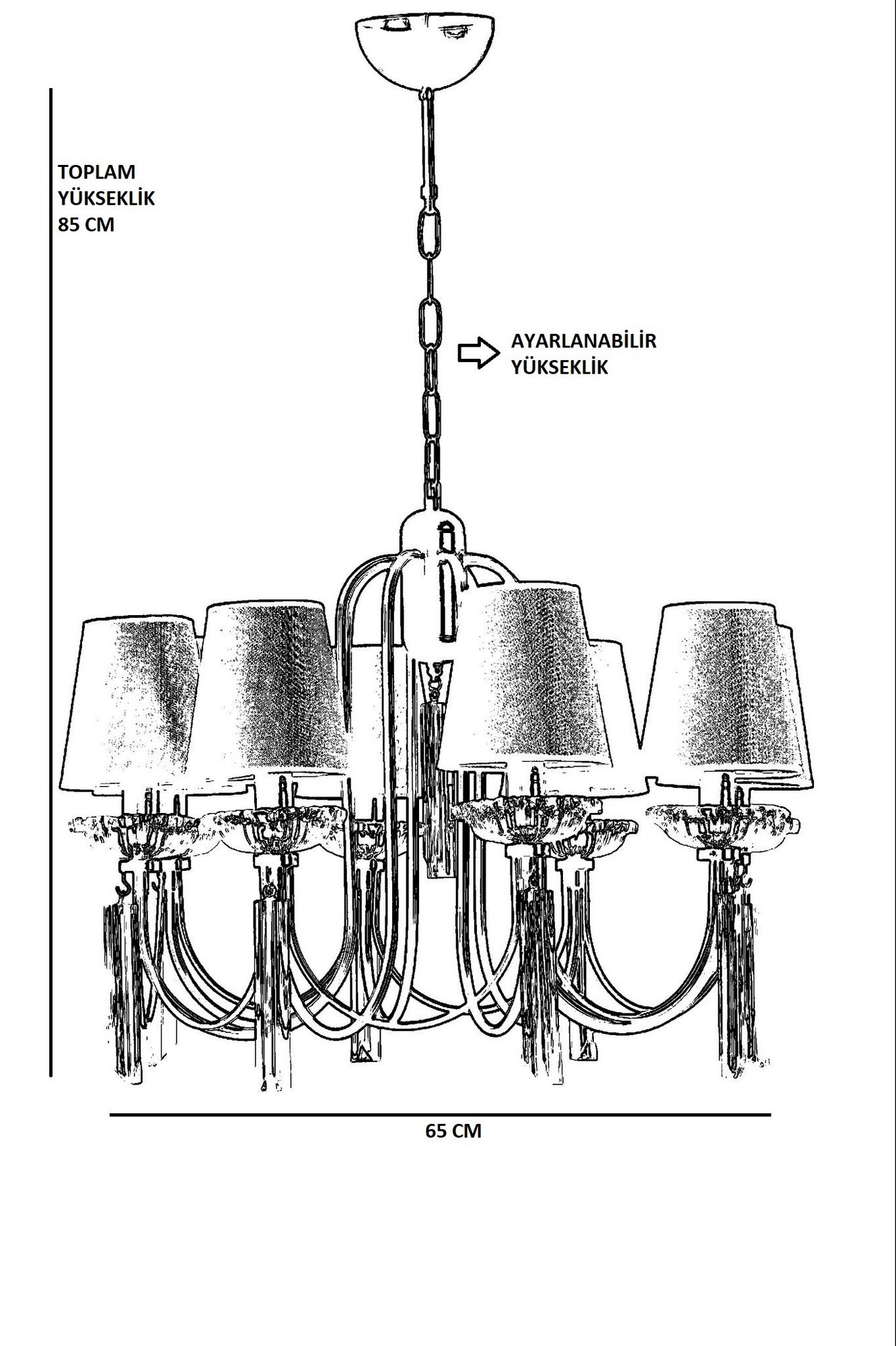 Os detalhes em pedra de cristal e vidro de cristal capturam a luz e criam um espetáculo deslumbrante que impressionará seus convidados. O diâmetro do teto de 65 cm e a altura total de 85 cm fazem deste lustre o tamanho perfeito para qualquer ambiente. O tipo de soquete E14 permite a instalação fácil de lâmpadas de até 40W, para que você possa criar a iluminação perfeita.