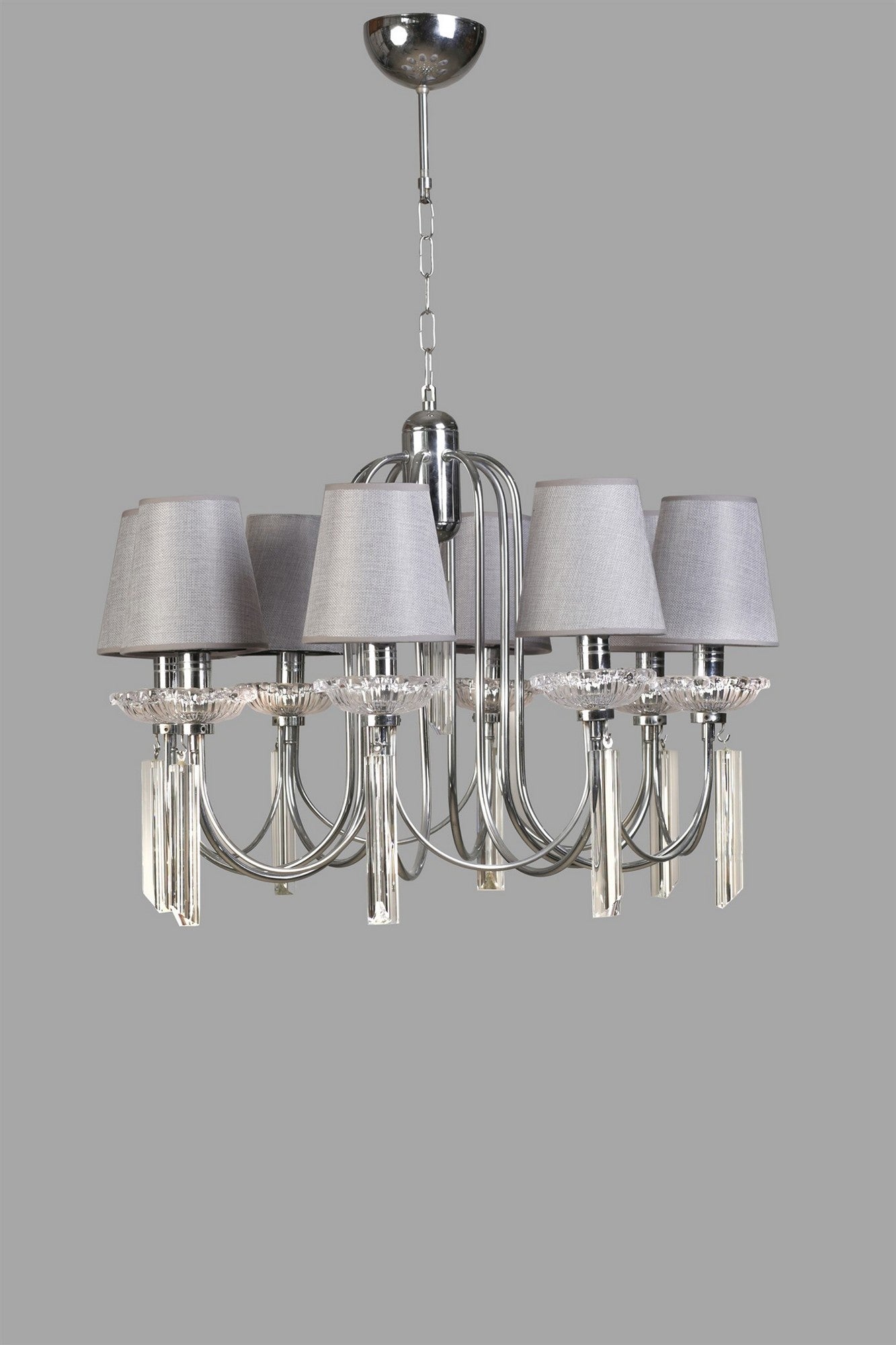 Transforme seu espaço de vida em um santuário luxuoso e elegante com nosso deslumbrante lustre de cristal. O design intricado e os cristais cintilantes cativarão seus convidados e os deixarão maravilhados. O revestimento cromado nas partes metálicas adiciona um toque de sofisticação moderna, enquanto a cor cinza complementa qualquer estilo de decoração.