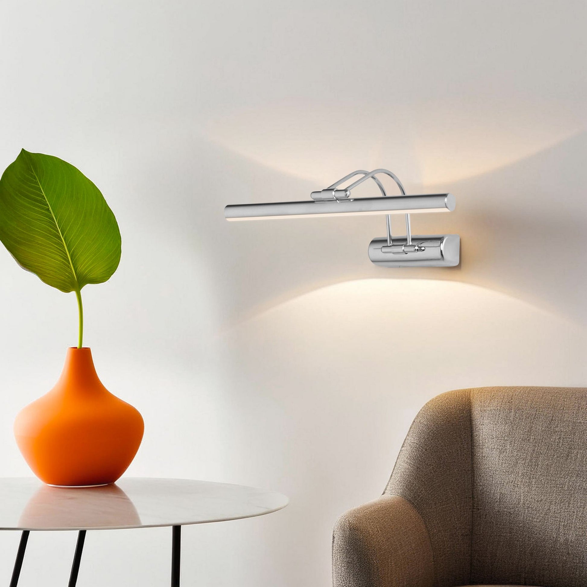 O candeeiro de parede apresenta uma cor cromada cativante que complementa sem esforço qualquer decoração interior. O seu design elegante e moderno dá um toque de elegância às suas paredes, tornando-o um ponto focal que irá certamente impressionar os seus convidados.