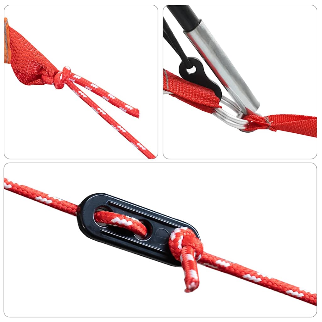 - Fácil montagem e desmontagem: montar e desmontar a tenda é muito fácil graças aos postes de fibra de vidro altamente flexíveis e leves e ao conveniente sistema de conexão por pinos e anéis.