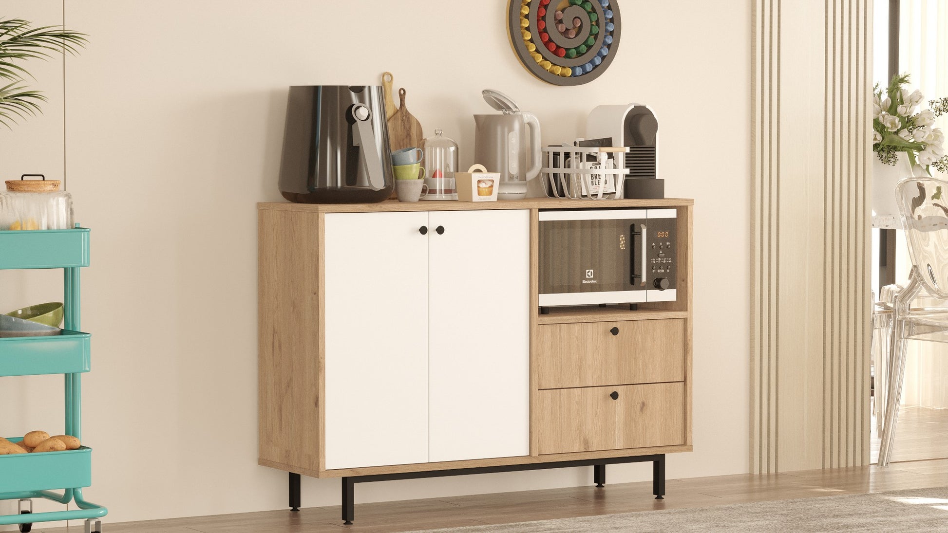 Fabricado a partir de painéis de partículas 100% revestidos a melamina, este armário foi construído para durar. A espessura de 18 mm garante durabilidade, enquanto as pernas metálicas proporcionam estabilidade e apoio. O armário também pode ser fixado à parede para maior segurança, tornando-o numa escolha segura e prática para qualquer casa.