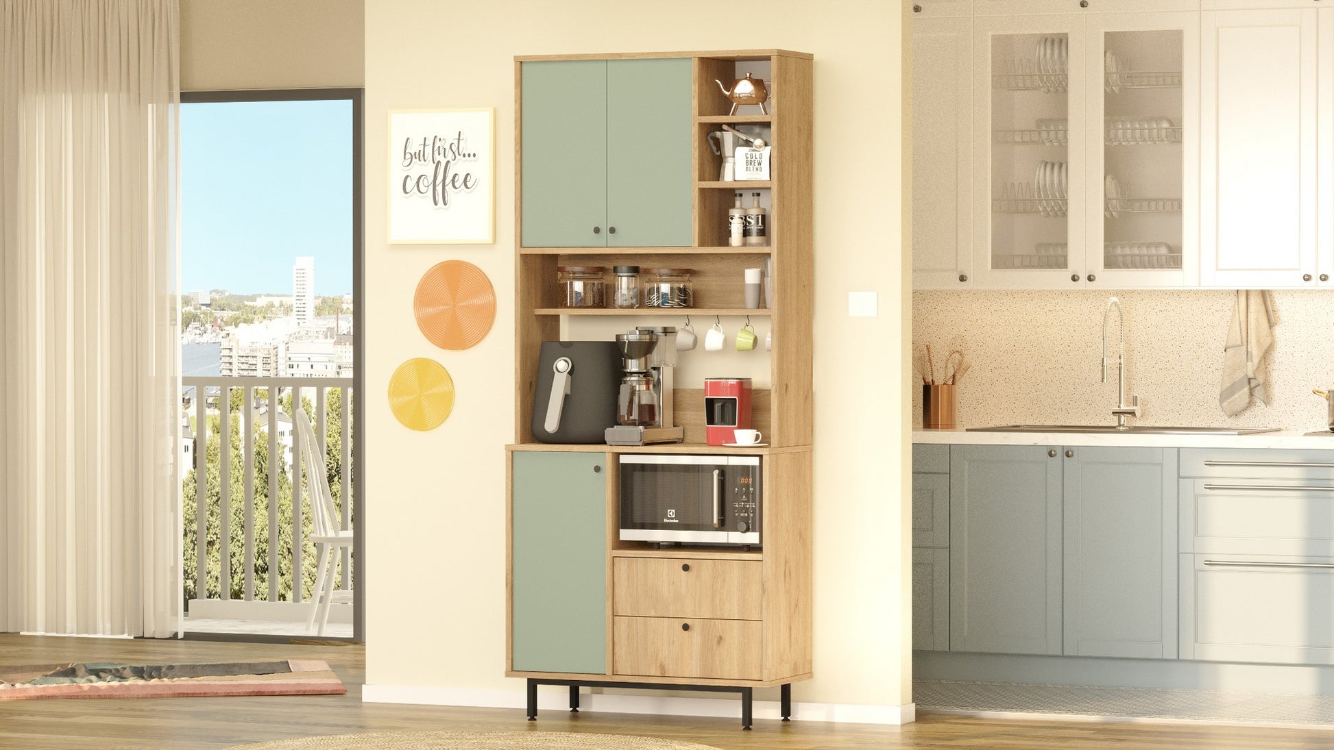 Armário multiuso – 88cm x 205cm x 35.5cm – Carvalho e Verde – Painel de partículas