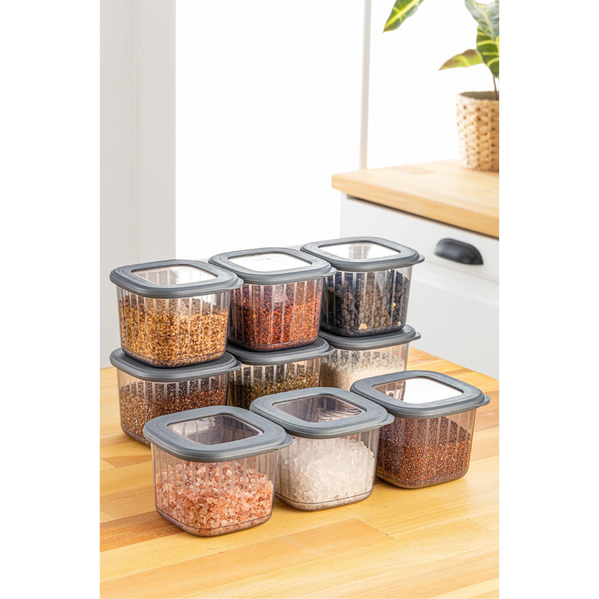 Conjunto de caixas de armazenamento – 10 x 10 x 9,5 cm – Antracite – Plástico