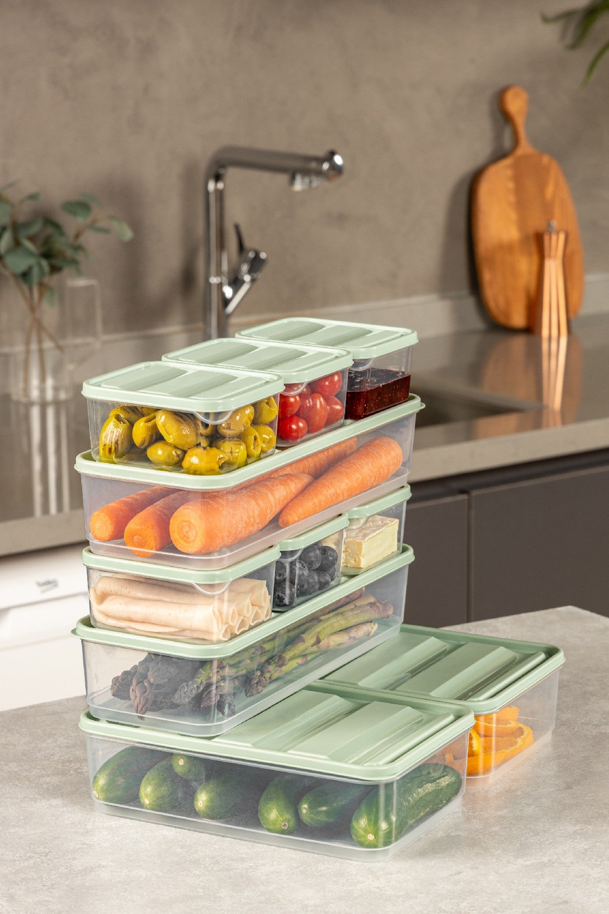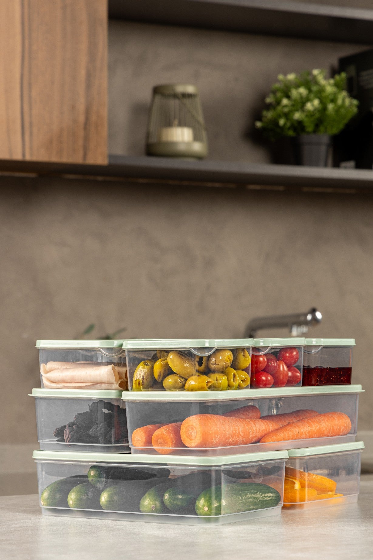 Conjunto de caixas de armazenamento – 10 peças – Hortelã – Plástico