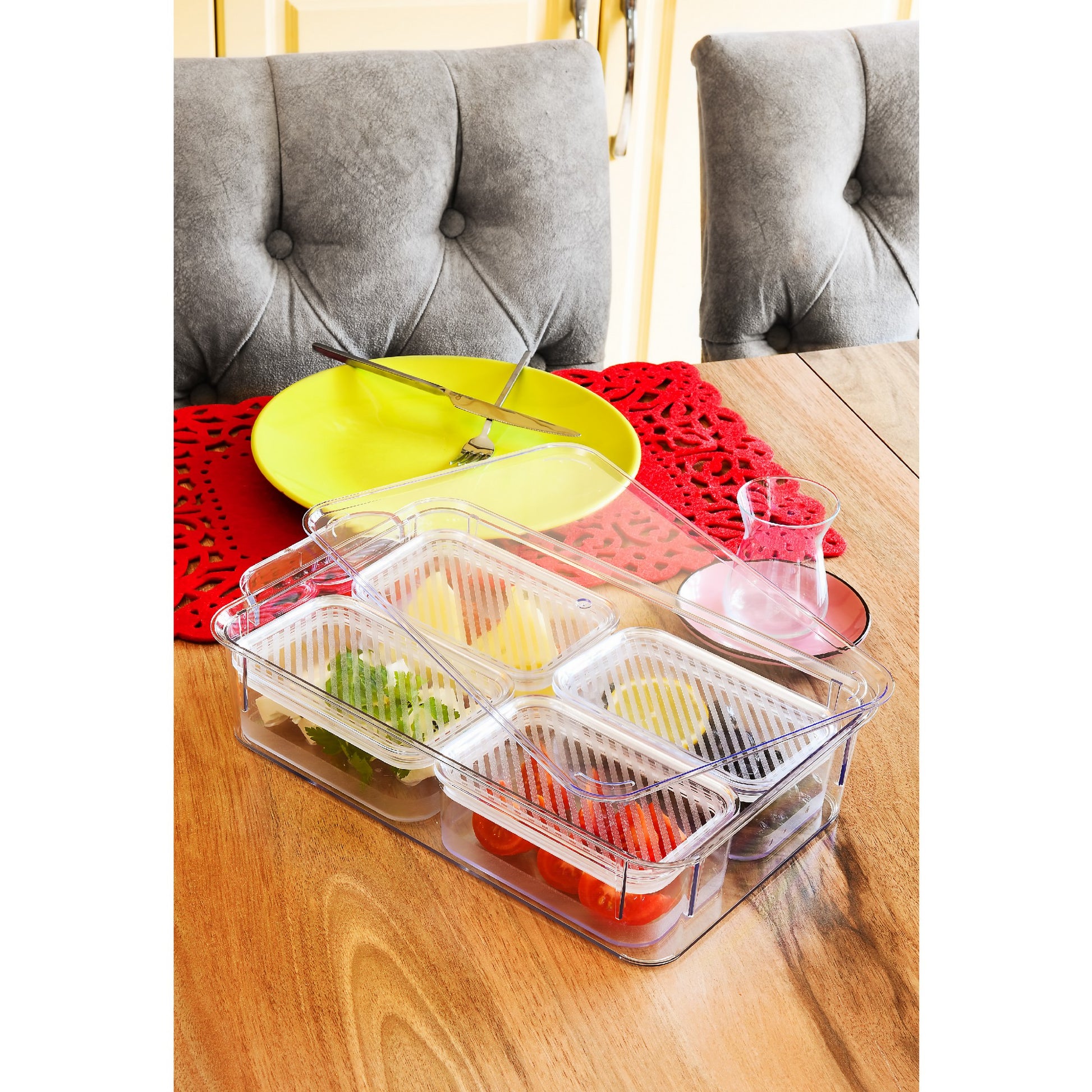 Conjunto de pequeno-almoço – 33 x 20 x 7 cm (tabuleiro) e 14 x 9 x 5 cm (taças) – Transparente – Plástico
