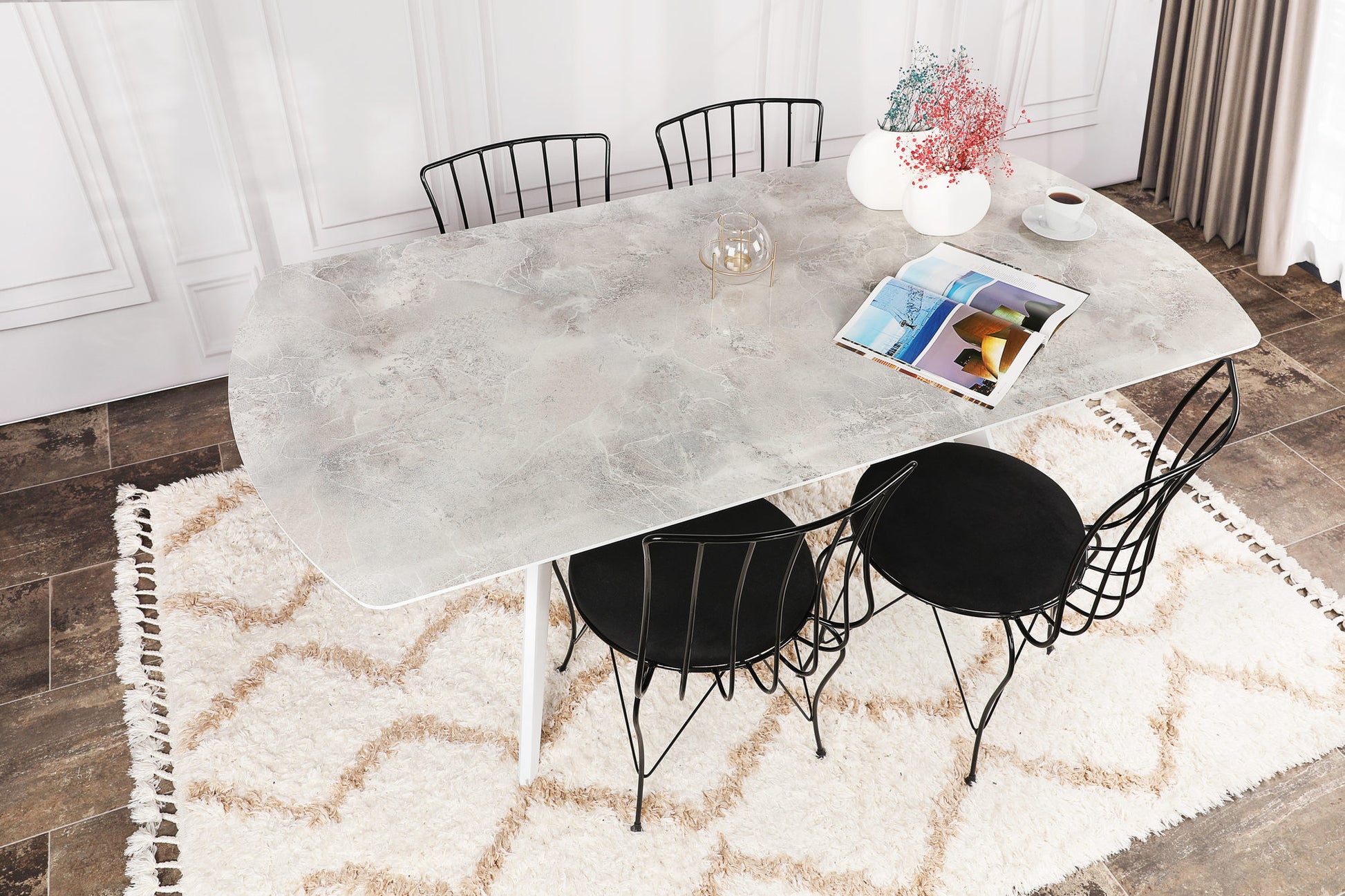 Com uma cor sólida em antracite, a nossa mesa de jantar exala uma vibração elegante e contemporânea que complementará sem esforço qualquer decoração interior. O design moderno e inovador acrescenta um toque de singularidade, tornando-a numa peça de destaque na sua área de refeições.