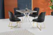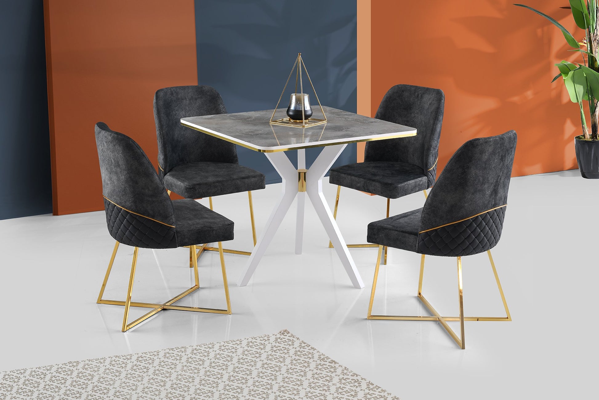 Mesa de jantar – 87x75x87 cm – Cinza, Branco e Dourado – MDF com pernas em Plástico