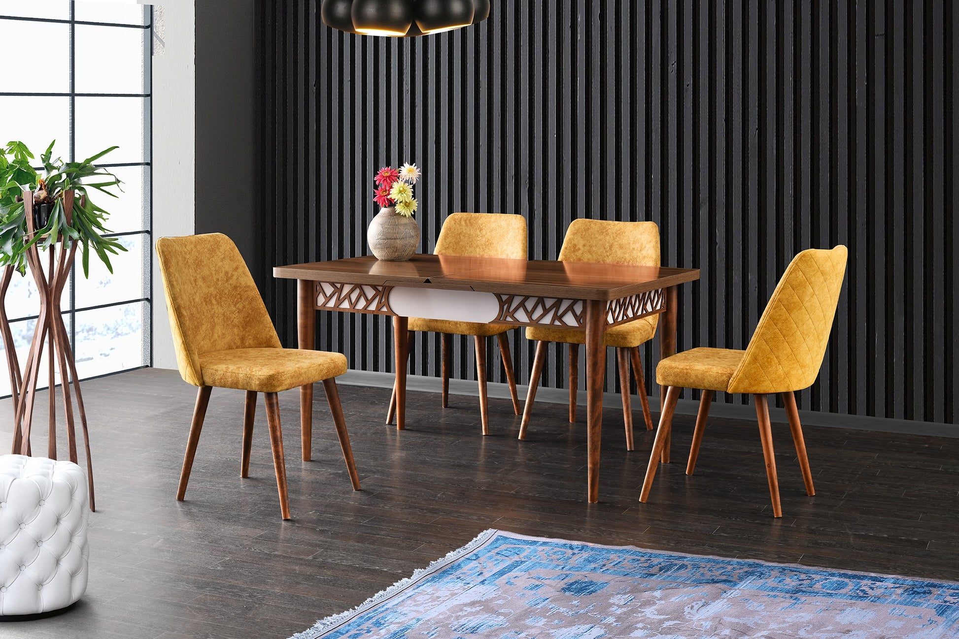 Transforme a sua sala de jantar com a nossa deslumbrante mesa de nogueira. Os tons ricos e quentes da madeira criarão um ambiente acolhedor e convidativo para a sua família e convidados. O design elegante e as modernas pernas de plástico dão um toque de elegância a qualquer espaço.