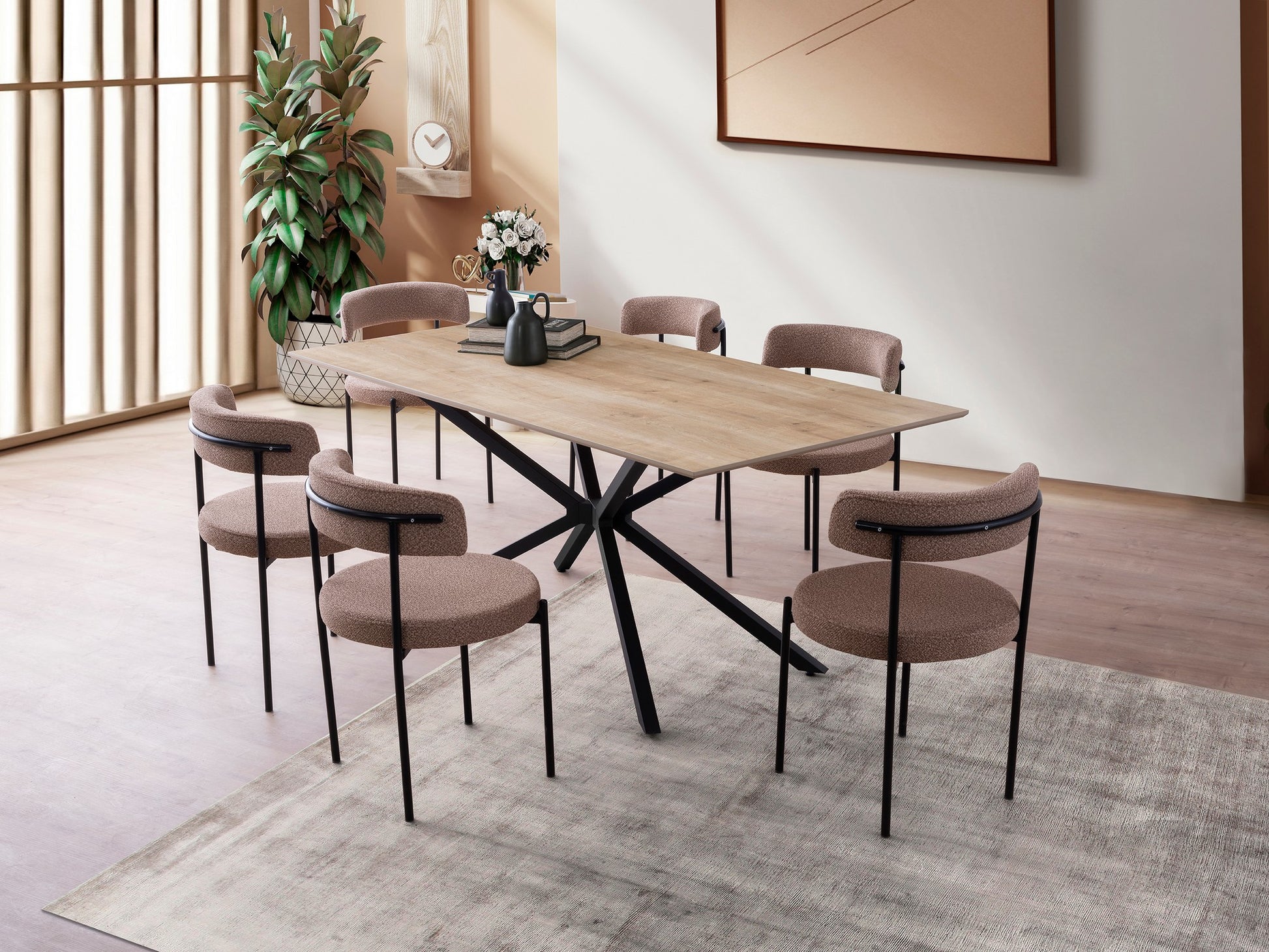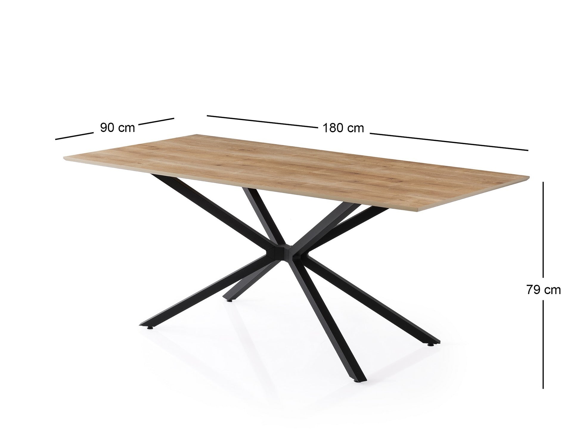 Mesa de jantar – 180 cm x 79 cm x 90 cm – Carvalho – 100% MDF com pernas de ferro