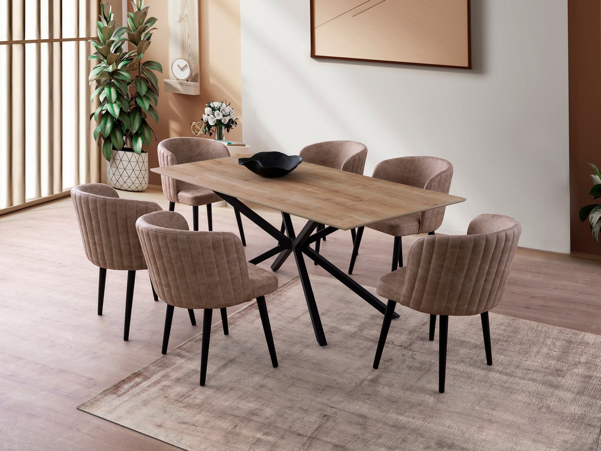 Imagine-se a organizar jantares e reuniões festivas à volta desta bonita mesa de jantar em carvalho. As suas dimensões espaçosas de 180 cm de largura, 79 cm de altura e 90 cm de profundidade proporcionam um espaço amplo para os convidados jantarem e socializarem confortavelmente. O design elegante e a estética moderna da mesa fazem dela uma peça versátil que complementa qualquer estilo de decoração.