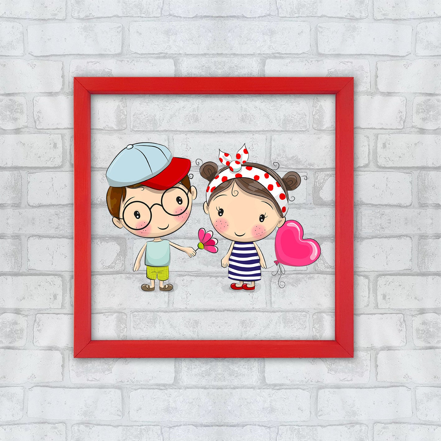 Quadro Decorativo Multicolor com Moldura de Madeira 32x32cm - Impressão Digital UV em Vidro 3mm