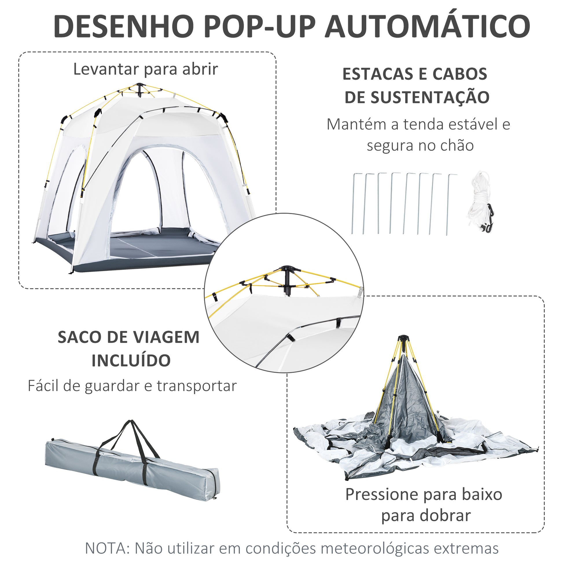 A Tenda de Campismo Pop Up 240x240x199 cm Cinza é a escolha perfeita para os amantes de campismo. Com amplo espaço interior, esta tenda oferece conforto durante todas as estações do ano para até 2-3 pessoas.