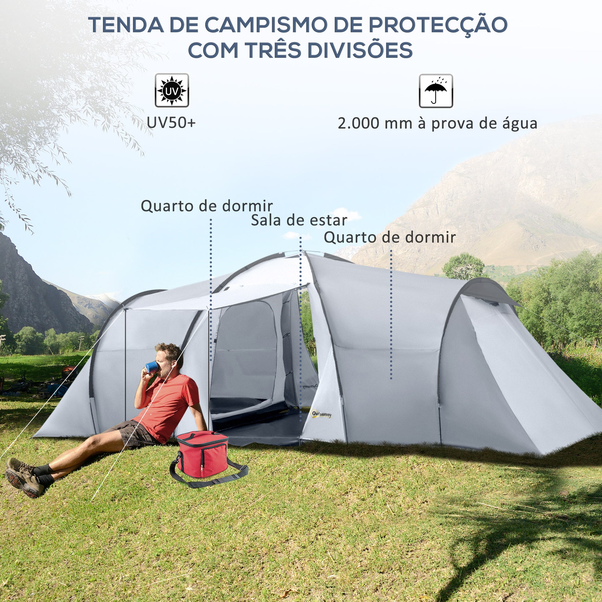 Aproveite o conforto e a praticidade desta tenda de campismo, proporcionando um espaço seguro e confortável para toda a família. Não recomendado para uso em condições extremas de inverno.