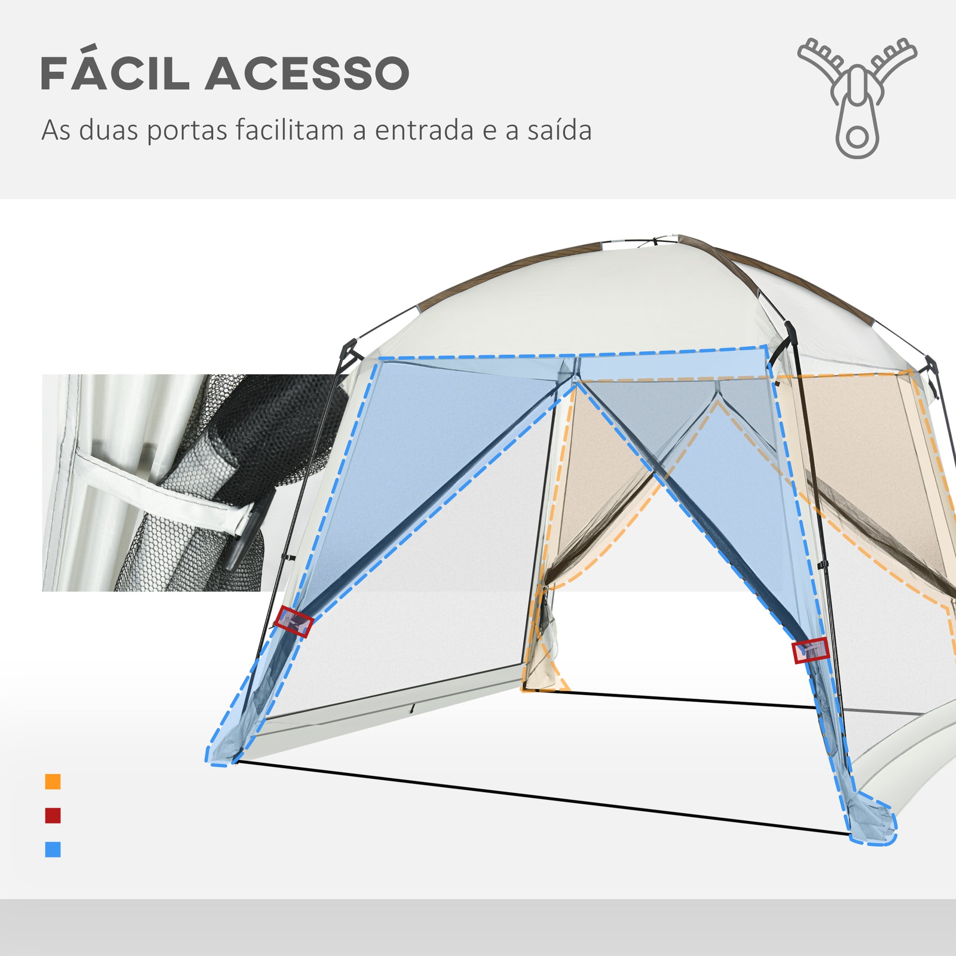 Esta tenda de jardim espaçosa oferece um amplo espaço interior para acomodar até 6-8 pessoas, sendo ideal para pátios, jardins, terraços e outras áreas externas.