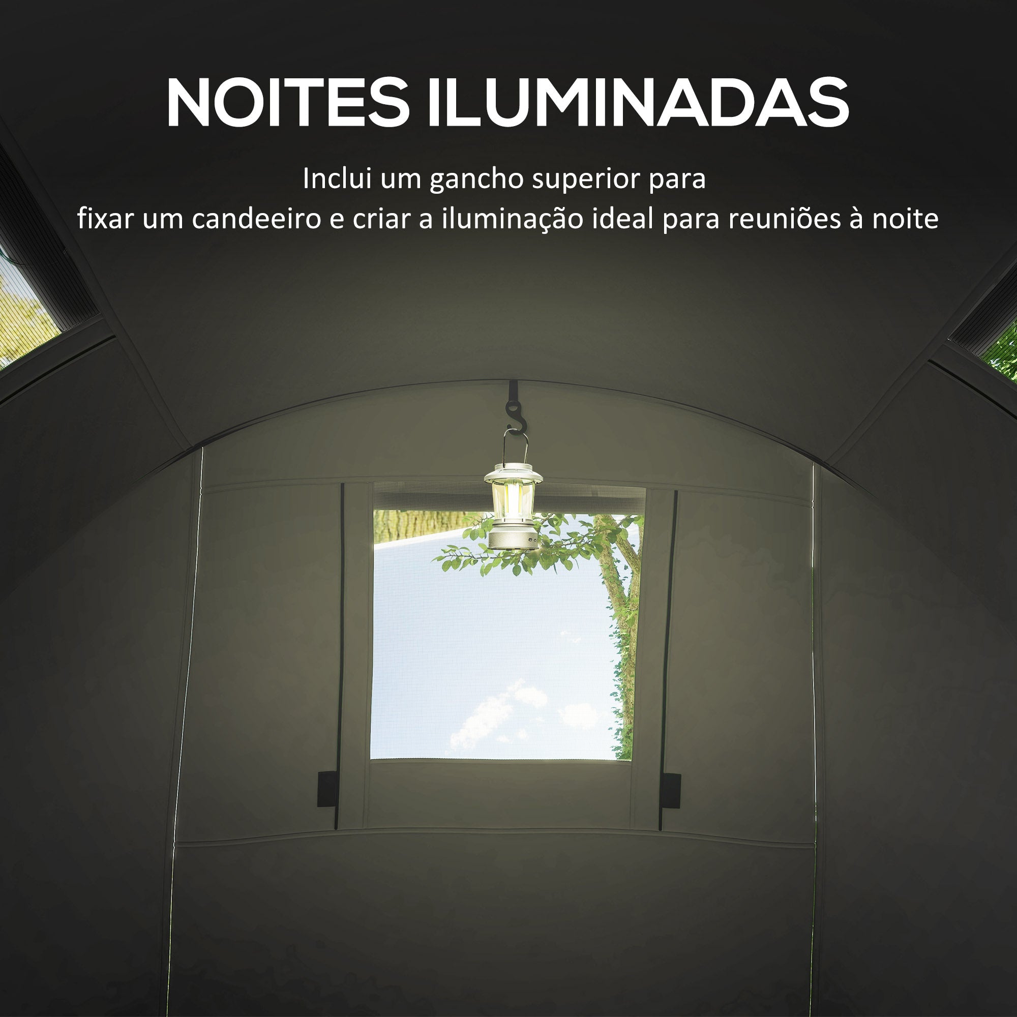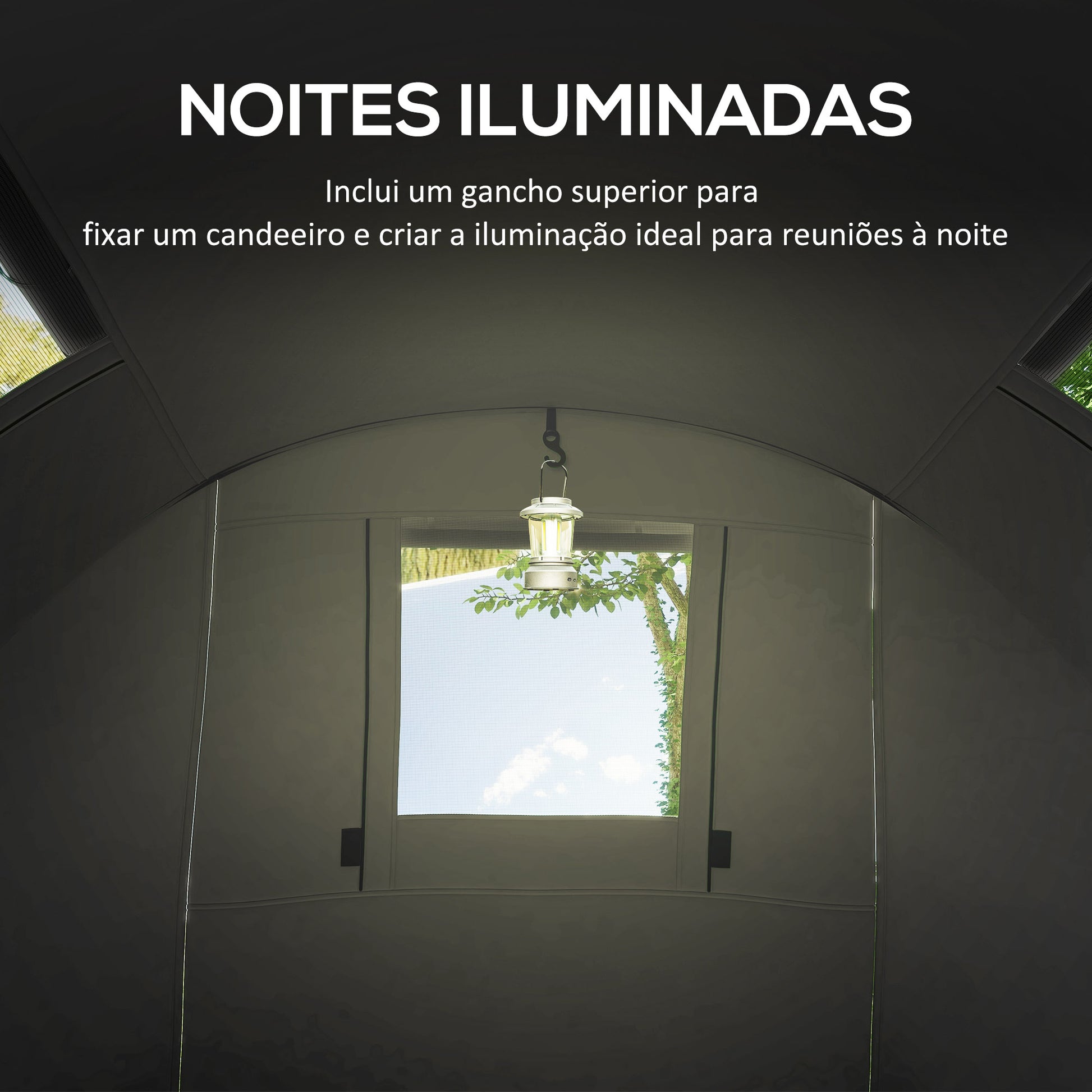 - Benefícios: Resistente à água, com janelas para ventilação, portas para fácil acesso, gancho para pendurar candeeiro.